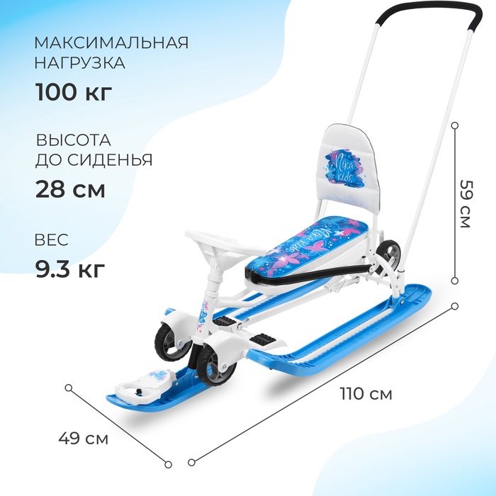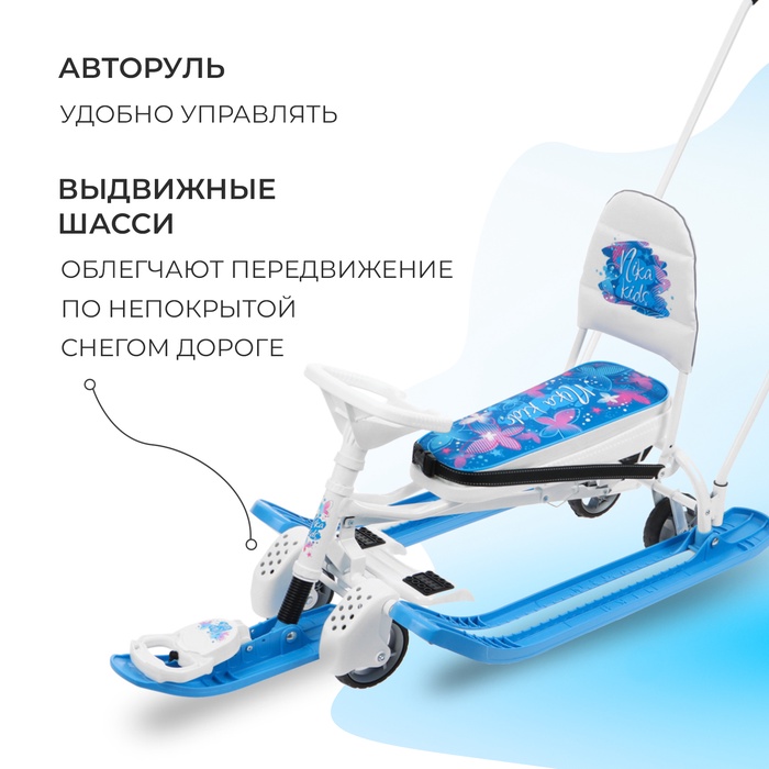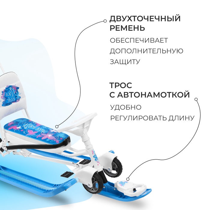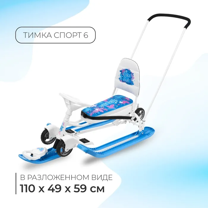 Снегокат с колёсами «Тимка спорт 6 Бабочки», ТС6/БТ, с родительской ручкой, со спинкой и ремнём безопасности — Характеристики