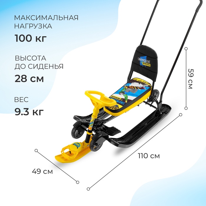 Снегокат с колёсами «Тимка спорт 6» Winter sport, ТС6/WS, с родительской ручкой, со спинкой и ремнём безопасности — Характеристики