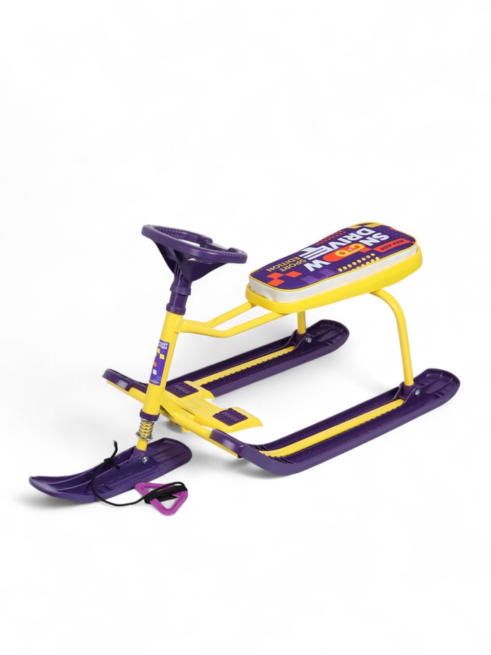 - Мягкое сиденье – обеспечивает максимальный комфорт во время катания, позволяя детям удобно разместиться на снегокате.