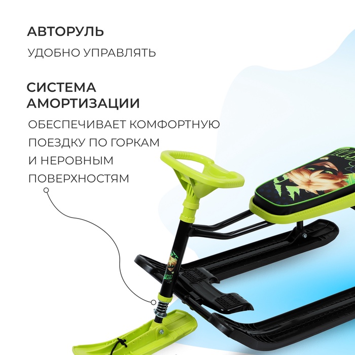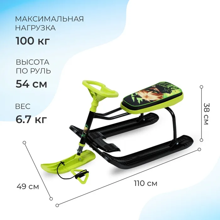 Снегокат предназначен для перевозки детей по плотному снегу или льду, а также для катания с горок. Имеет сварную конструкцию из стальных труб и пластиковых элементов и мягкое сиденье. Снегокат оборудован буксировочным тросом. Усиленный тормоз эффективен на обледенелой поверхности и высокой скорости.