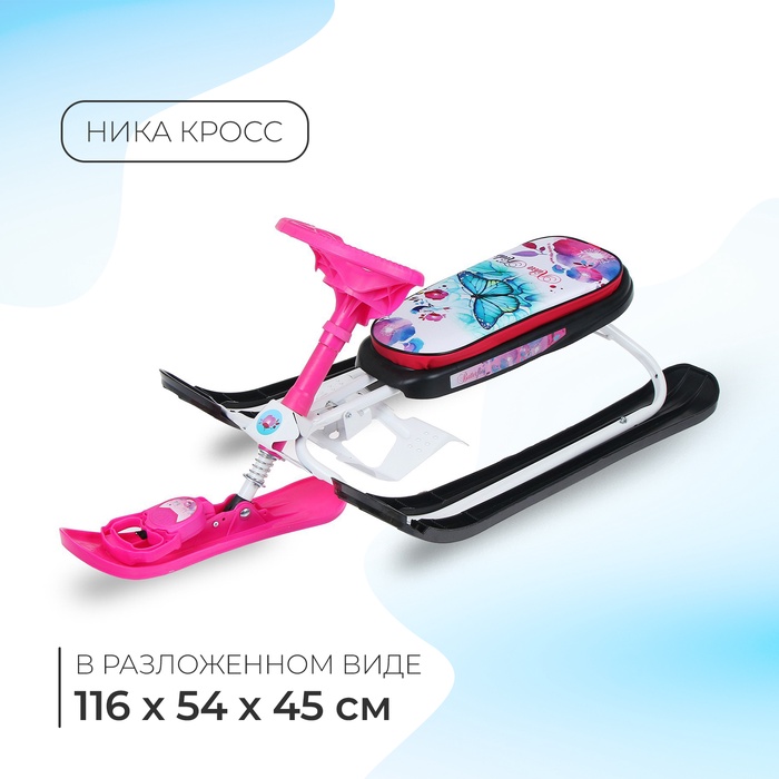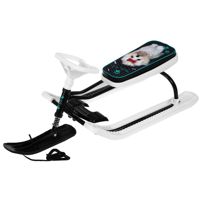 Снегокат предназначен для перевозки детей по плотному снегу или льду, катанию с горок. Имеет сварную конструкцию из стальных труб, пластиковых элементов и мягкое сиденье, обтянутое искусственной кожей с рисунком. Оснащён буксировочным тросом. Усиленный тормоз эффективен на обледенелой поверхности. В комплект входит набор наклеек на снегокат.