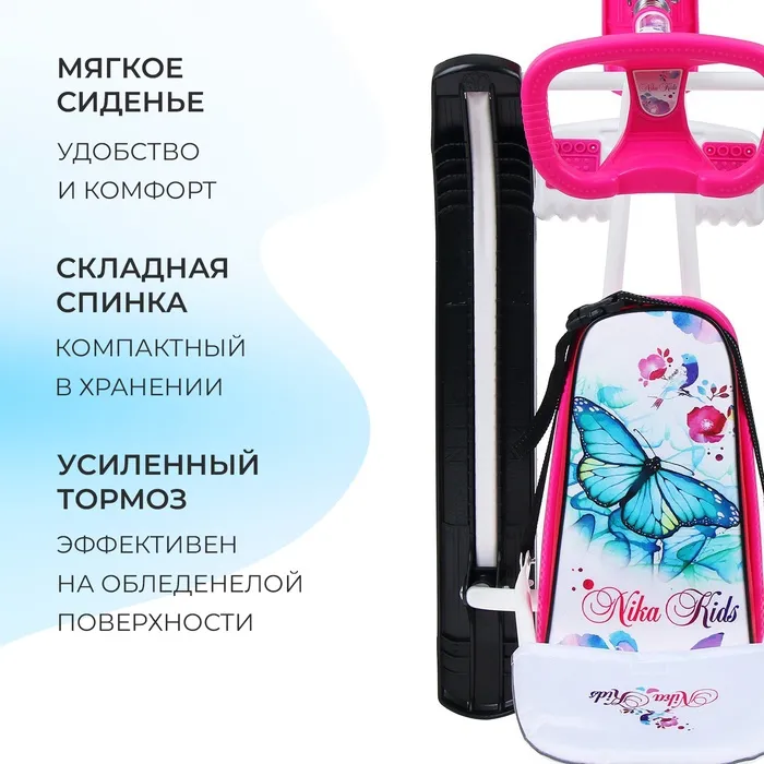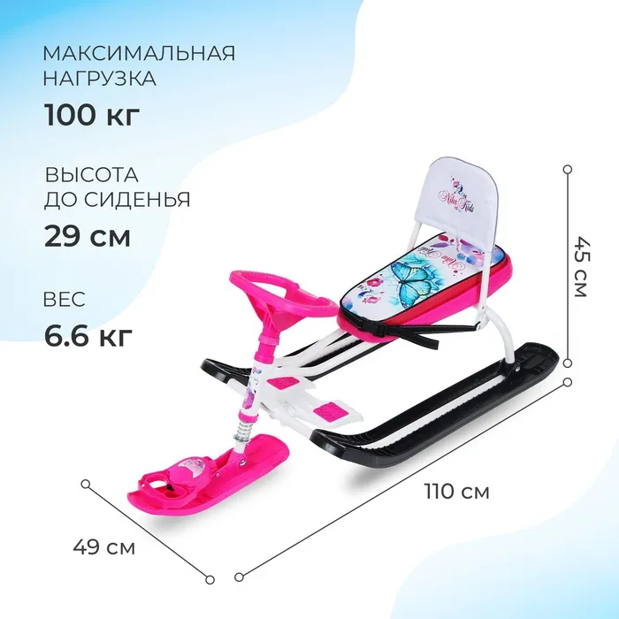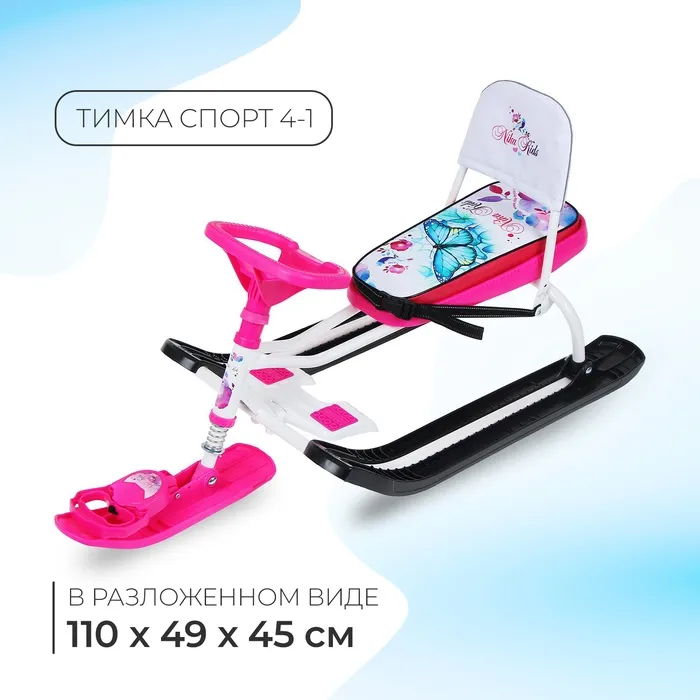 Снегокат «Тимка спорт 4-1 Бабочки», ТС4-1/Б2, со спинкой и ремнём безопасности — Характеристики