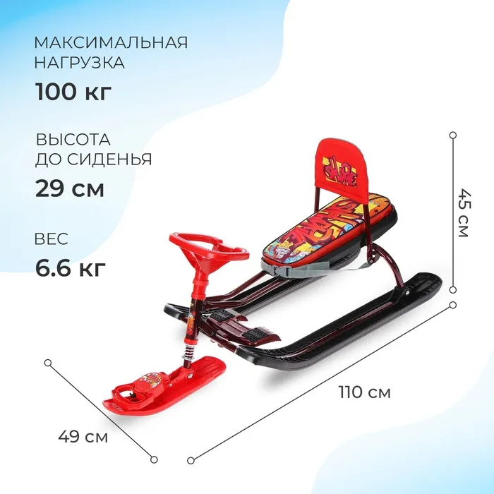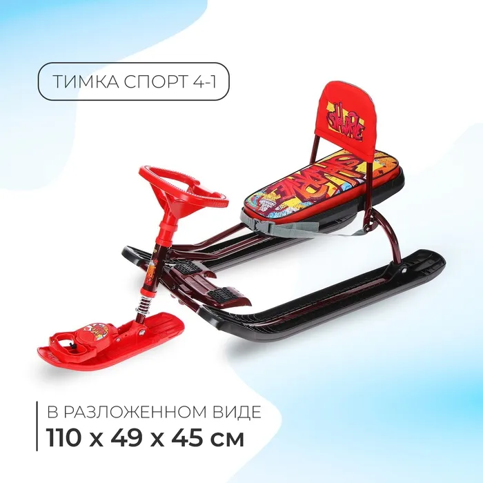 Снегокат «Тимка спорт 4-1 Граффити», ТС4-1/GR, со спинкой и ремнём безопасности — Характеристики