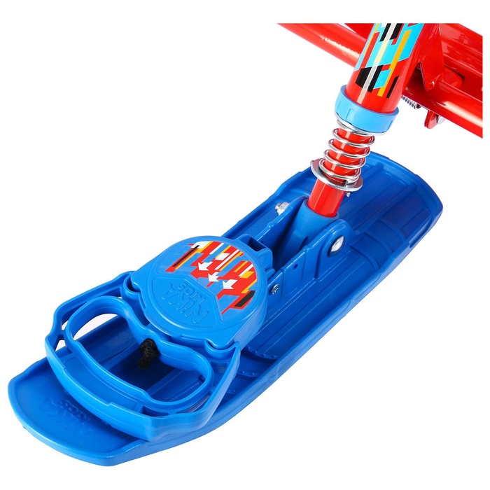 Снегокат предназначен для перевозки детей по плотному снегу или льду, катанию с горок. Имеет сварную конструкцию из стальных труб и пластиковых элементов. Оснащён мягким сиденьем, обтянутым искусственной кожей с рисунком, складной спинкой и двухточечным ремнём безопасности. Оборудован буксировочным тросом с автоматической намоткой и системой амортизации, которая обеспечивает комфортную поездку по крутым горкам и неровным поверхностям. Усиленный тормоз эффективен на обледенелой поверхности.