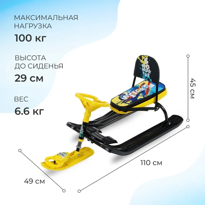 Снегокат «Тимка спорт 4-1 Зимний спорт», ТС4-1/С, со спинкой и ремнём безопасности — Характеристики