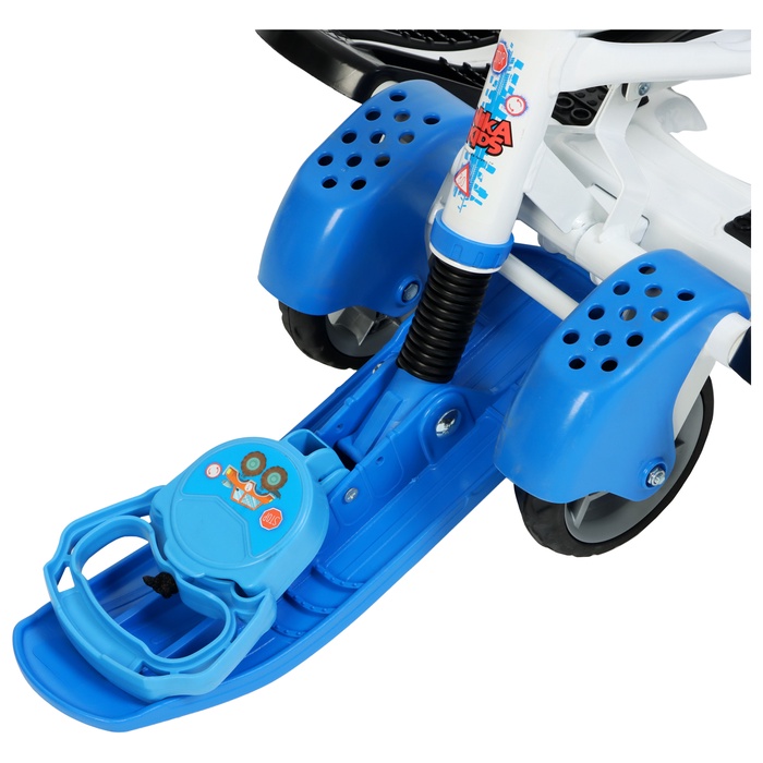 Снегокат предназначен для перевозки детей по плотному снегу, льду или более твёрдой поверхности, а также для катания с горок. Имеет сварную конструкцию из стальных труб и пластиковых элементов и удлинённое мягкое сиденье. Снегокат оборудован буксировочным тросом с автоматической намоткой и двухточечным ремнём безопасности. Выдвижные шасси облегчают передвижение по непокрытой снегом дороге, такой как асфальт или грунт. Родительская ручка позволяет легко управлять транспортом. Усиленный широкий тормоз эффективен на обледенелой поверхности и высокой скорости. В комплект входит набор наклеек на снегокат.