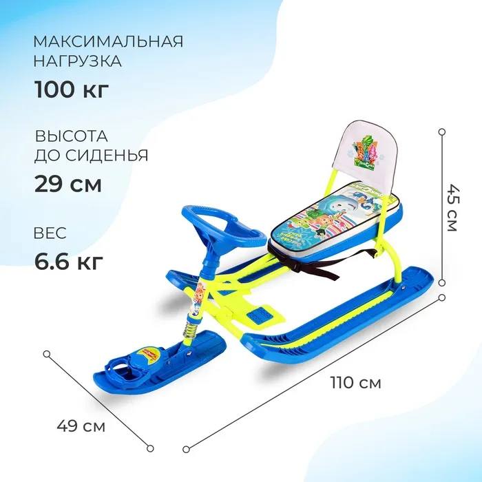 Снегокат «Тимка спорт Фиксики», ТС4-1/Ф22, со спинкой и ремнём безопасности — Характеристики
