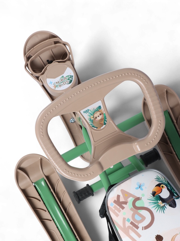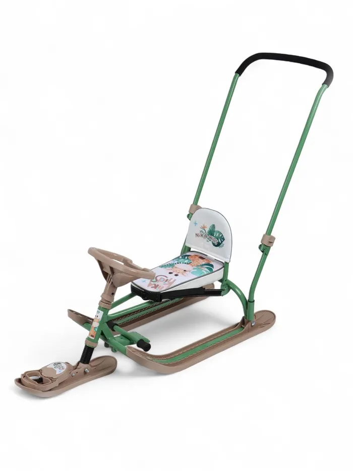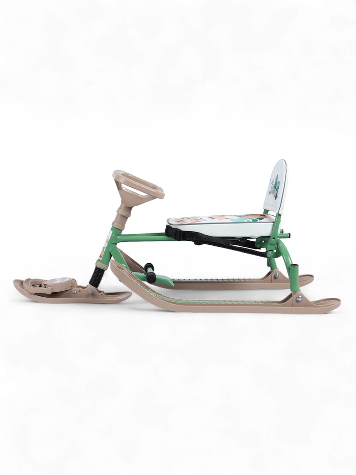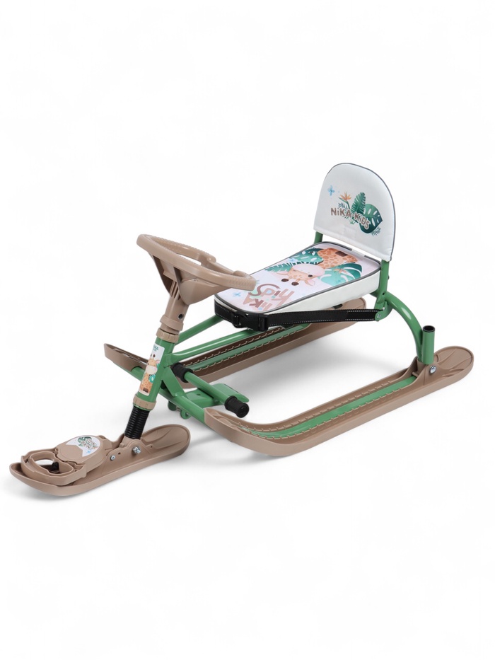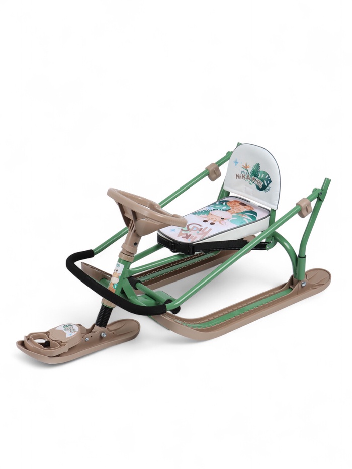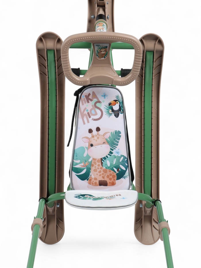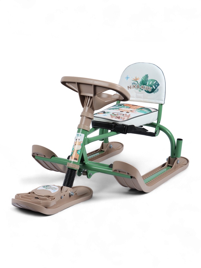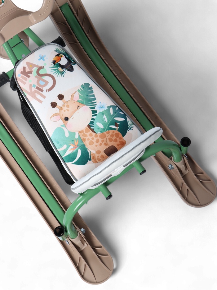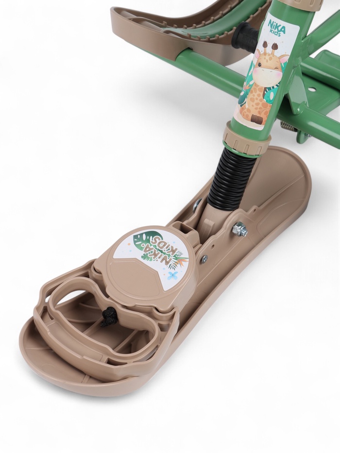 Снегокат «Twiny 2+» с жирафиком, со спинкой, с родительской ручкой, зелёный, коричневый, TW2+/Ж Nika — Характеристики