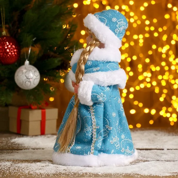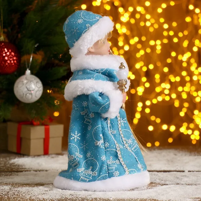 Снегурочка под ёлку «Зимнее волшебство. Голубая шубка, с посохом» с подсветкой, двигается, 30 см, голубой — Характеристики