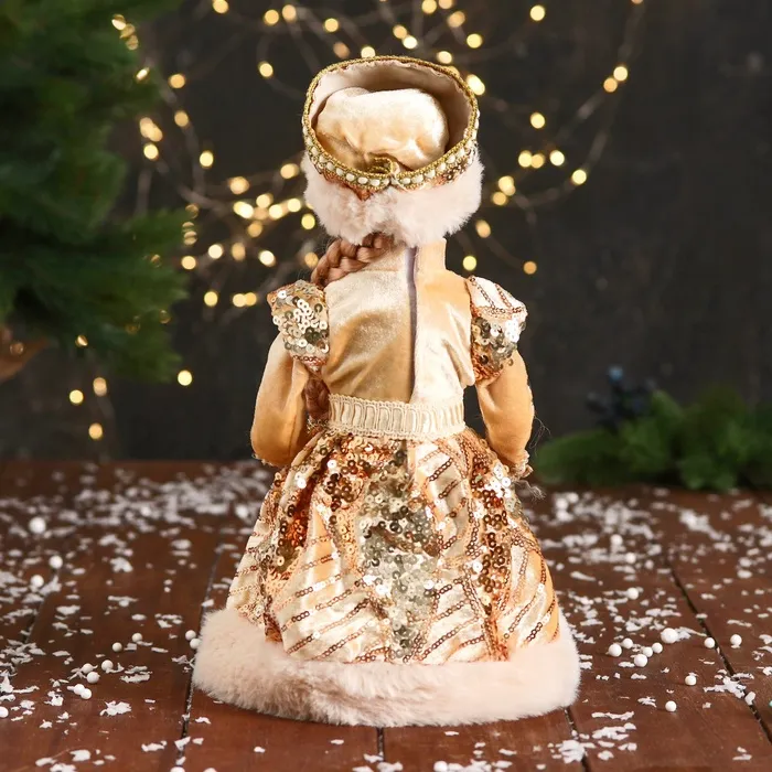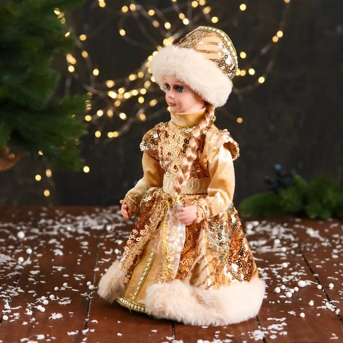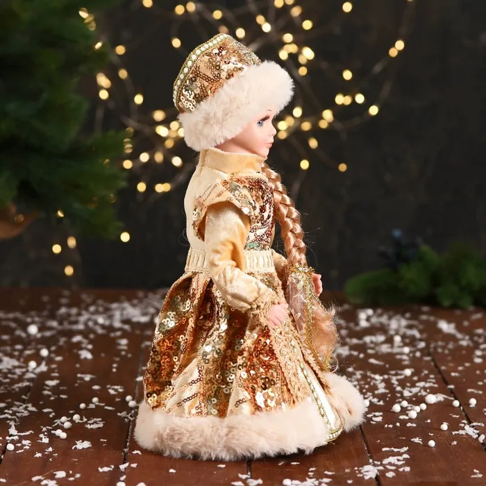 Снегурочка под ёлку «Зимнее волшебство. Платье с пайетками» двигается, 30 см, золото — Характеристики