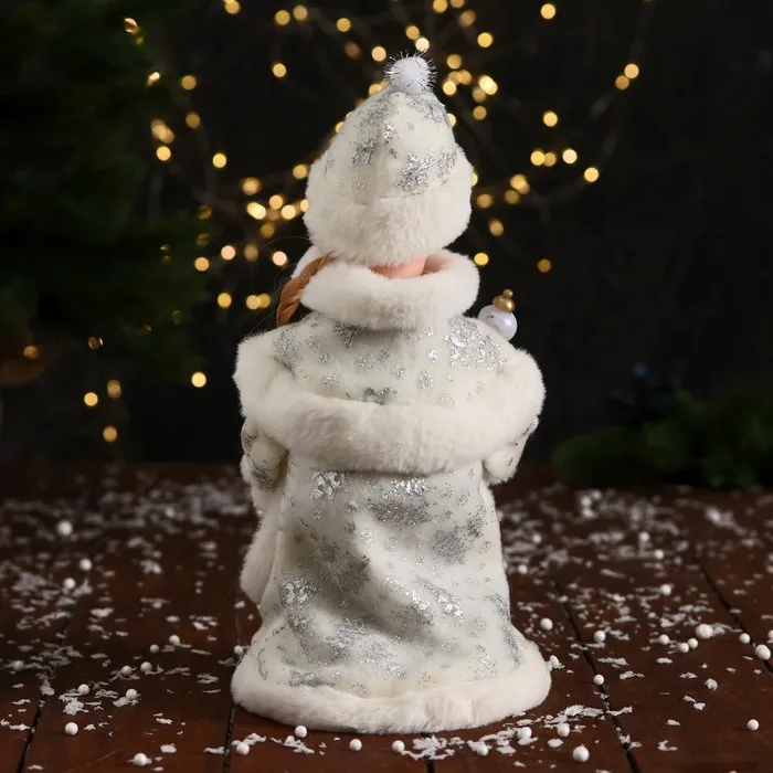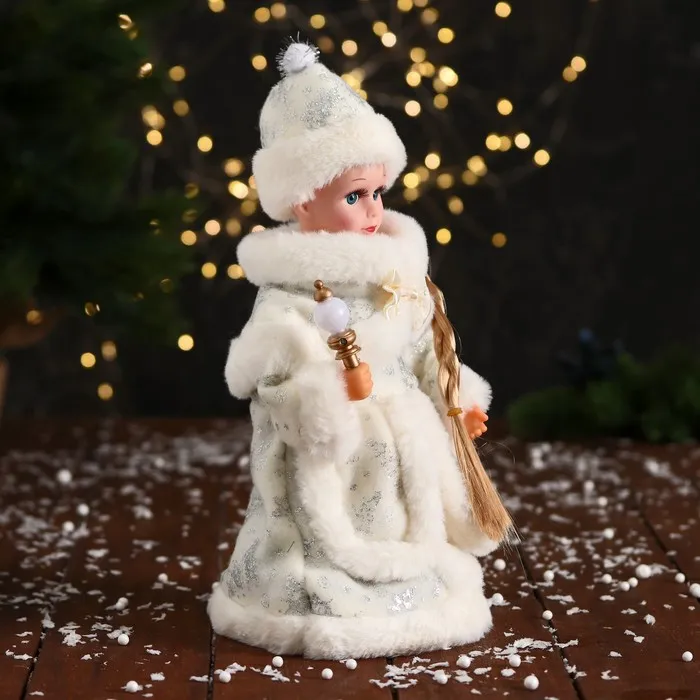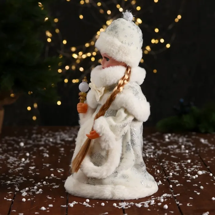 Снегурочка под ёлку «Зимнее волшебство. Пушистой шубке с бантом и фонариком» двигается, 30 см, белый — Характеристики