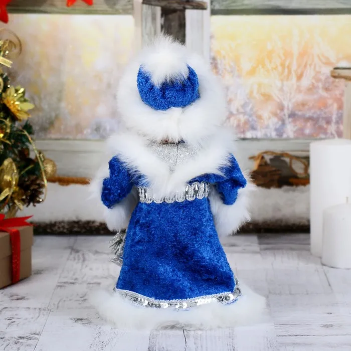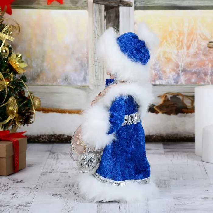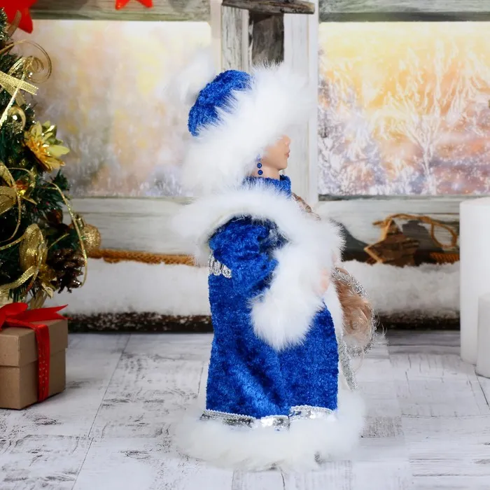 Снегурочка под ёлку «Зимнее волшебство. Шик в синей шубке с серёжками» двигается, 29 см — Характеристики