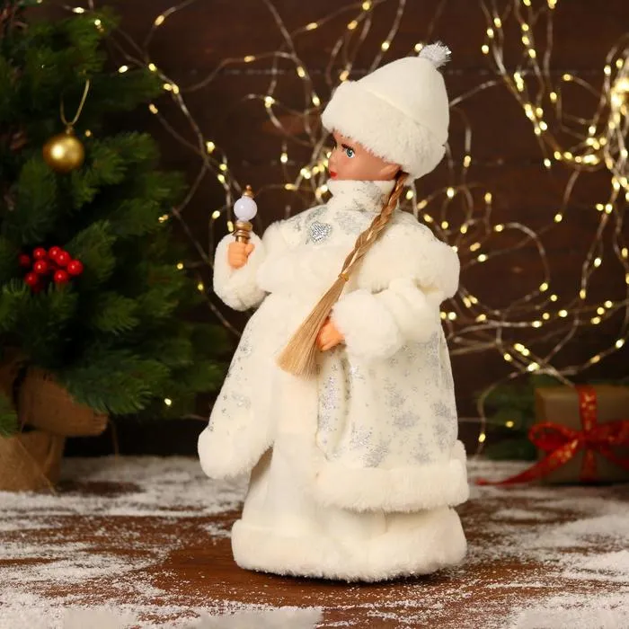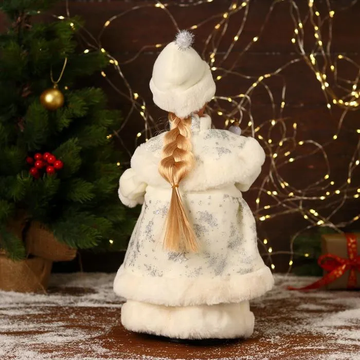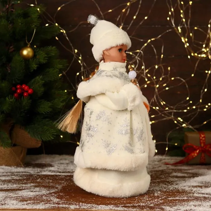 Снегурочка под ёлку «Зимнее волшебство. В белой шубке и шапочке» двигается, 40 см — Характеристики