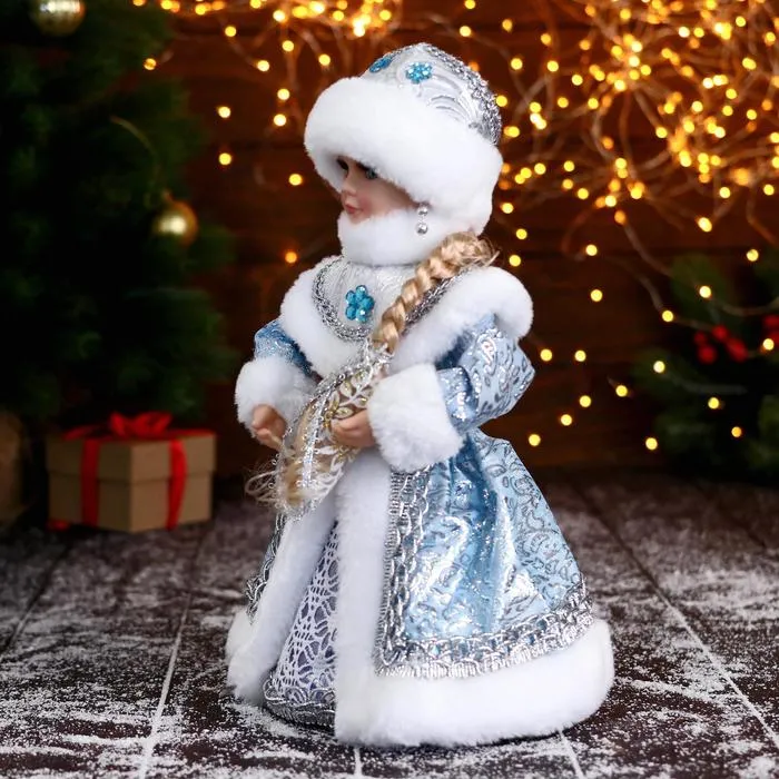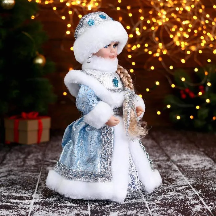 Снегурочка под ёлку «Зимнее волшебство. В голубой шубке с цветами» двигается, 30 см — Характеристики