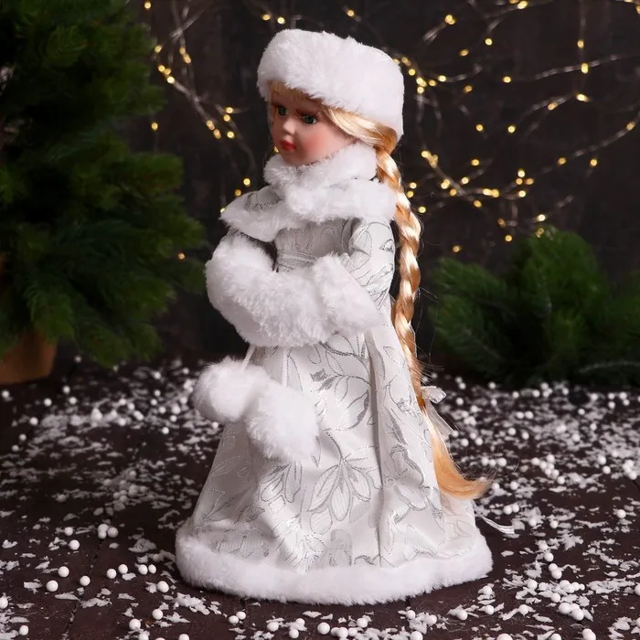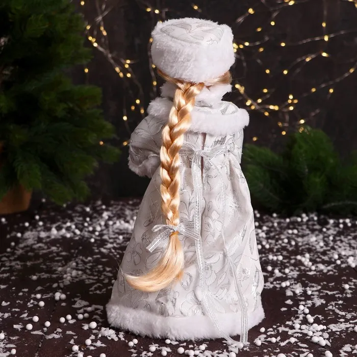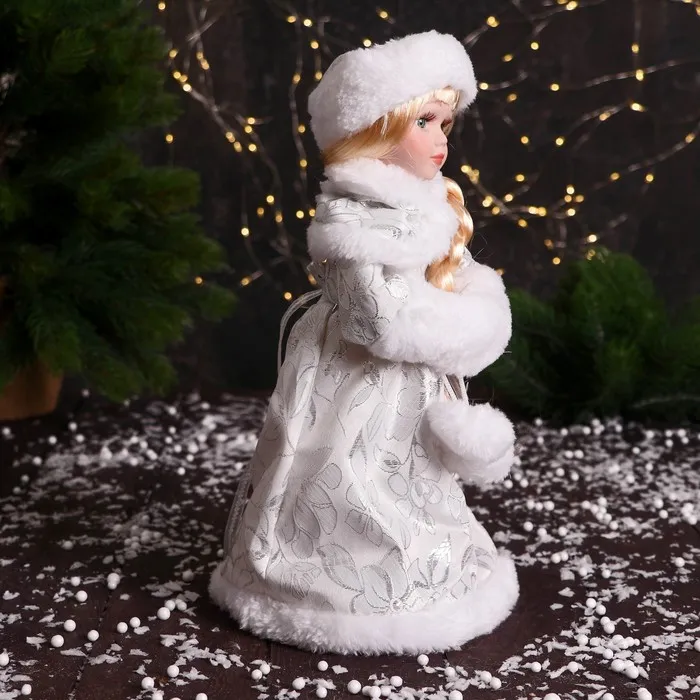 Снегурочка под ёлку «Зимнее волшебство. В муфте с меховыми бомбошками», 33 см, серебристо-белый — Характеристики