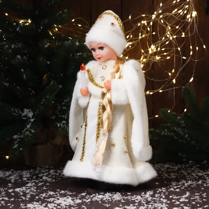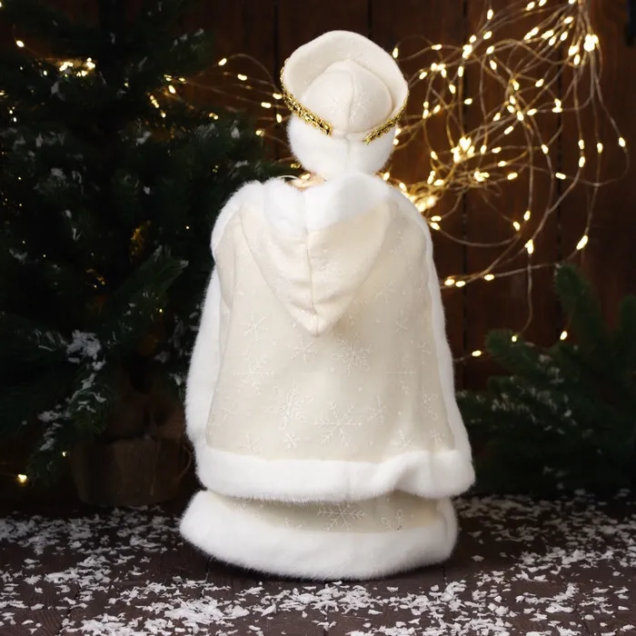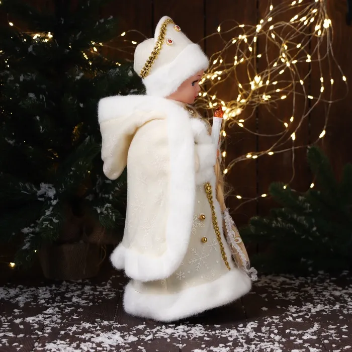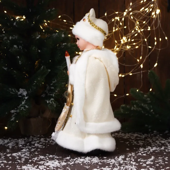 Снегурочка под ёлку «Зимнее волшебство. В шубке с бусинками и в кокошнике» двигается, с подсветкой, 40 см, золото — Характеристики