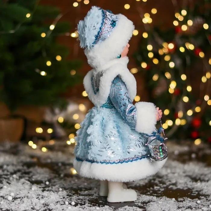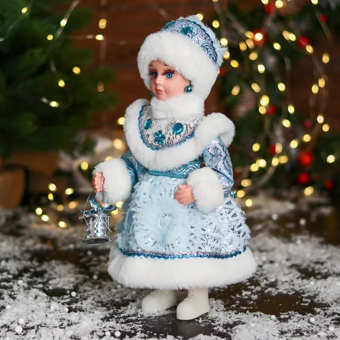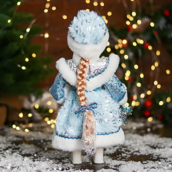 Снегурочка под ёлку «Зимнее волшебство. В шубке с камнями и барабанчиком», 30 см, голубой — Характеристики
