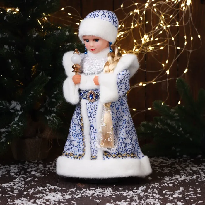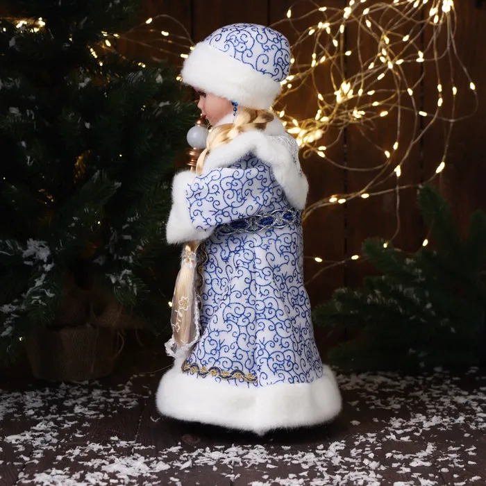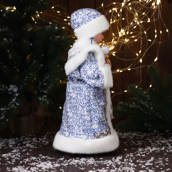 Снегурочка под ёлку «Зимнее волшебство. В шубке с орнаментом» двигается, с подсветкой, 40 см, синий — Характеристики