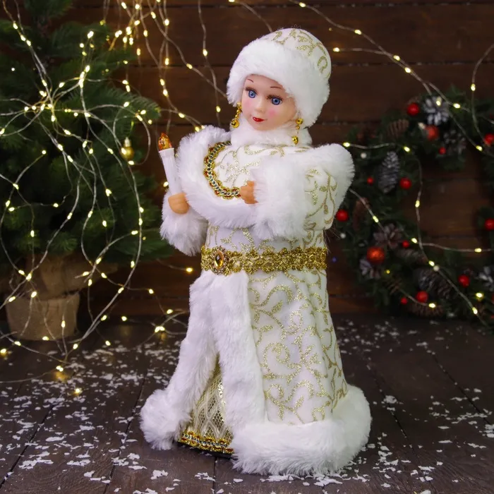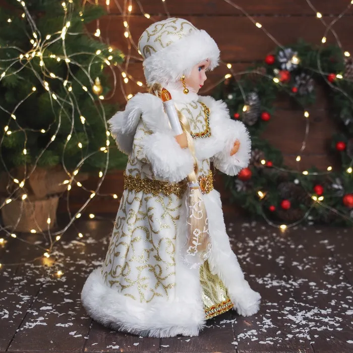 Снегурочка под ёлку «Зимнее волшебство. В шубке с орнаментом» двигается, с подсветкой, 40 см, золото — Характеристики