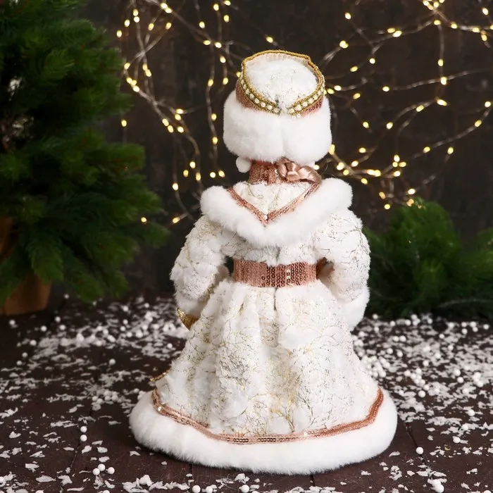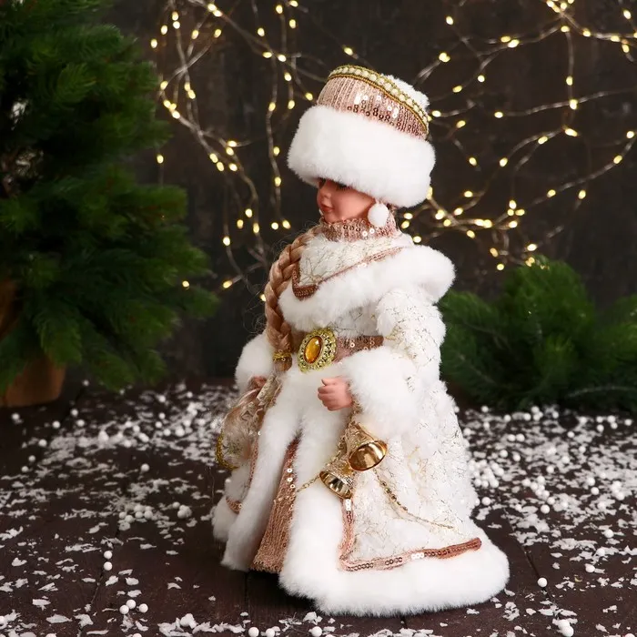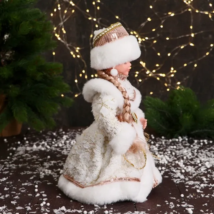Снегурочка под ёлку «Зимнее волшебство. В шубке с пайетками и косой» двигается, 30 см, бежево-белый — Характеристики