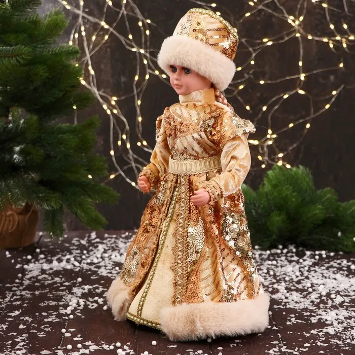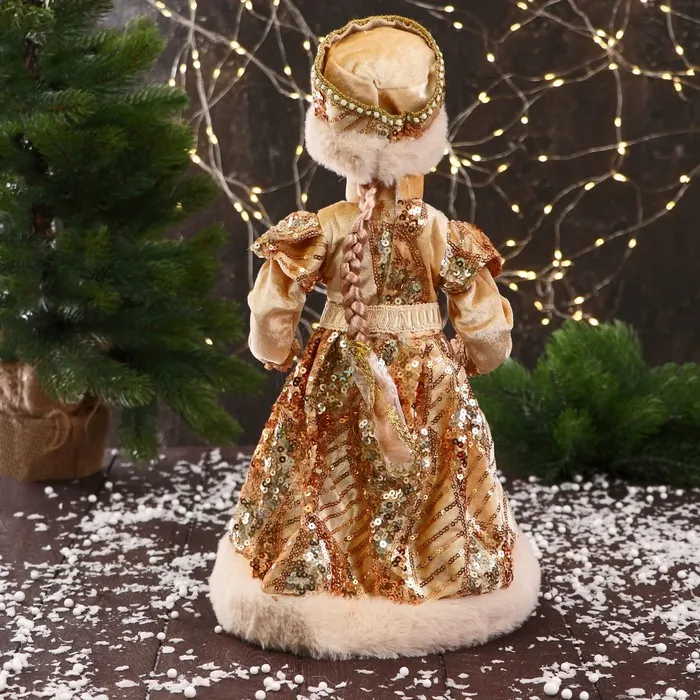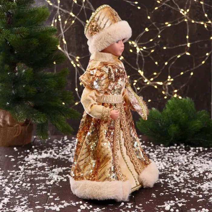 Снегурочка под ёлку «Зимнее волшебство. В шубке с россыпью блеска» двигается, 40 см, золото — Характеристики