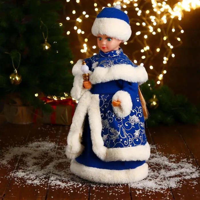 Снегурочка под ёлку «Зимнее волшебство. В синей шубке и шапочке» двигается, 40 см — Характеристики