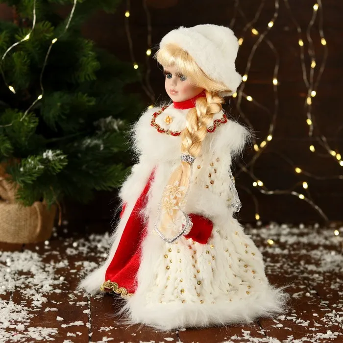 Снегурочка под ёлку «Зимнее волшебство. В текстурной шубке», 32 см, белый — Характеристики