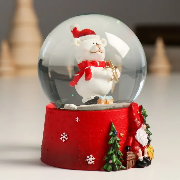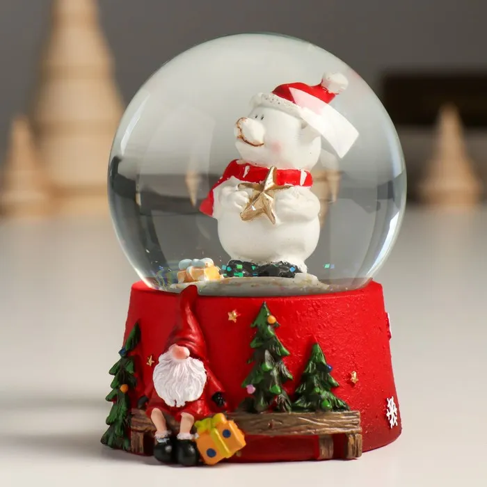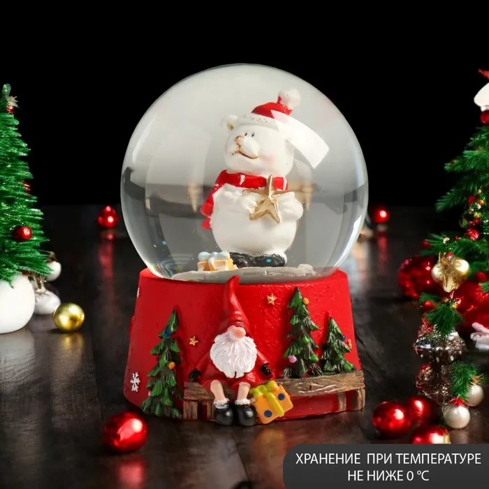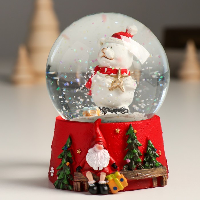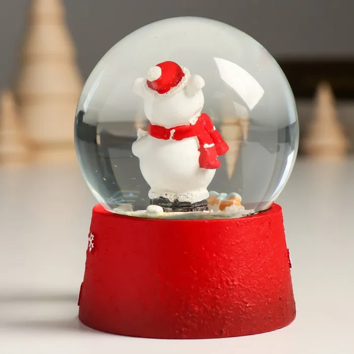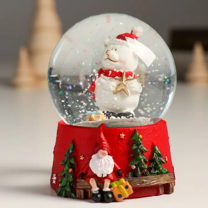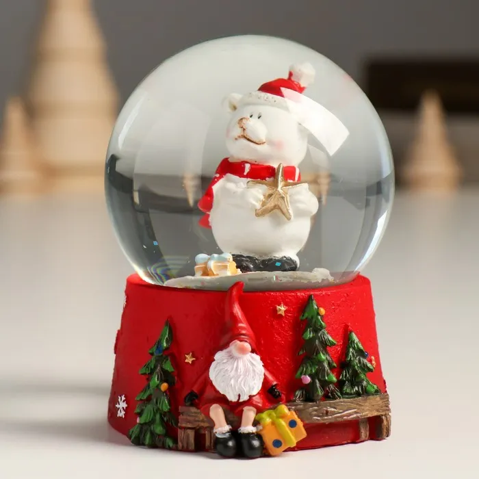 Снежный шар новогодний стеклянный «Белый мишка в новогоднем колпаке со звездочкой», 7×8×9 см — Характеристики