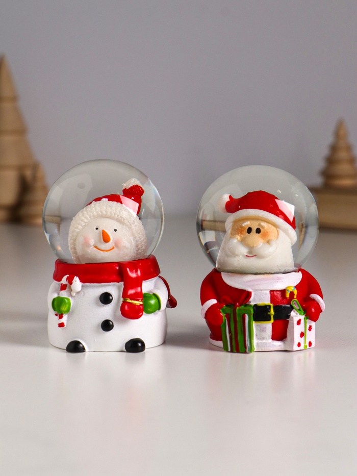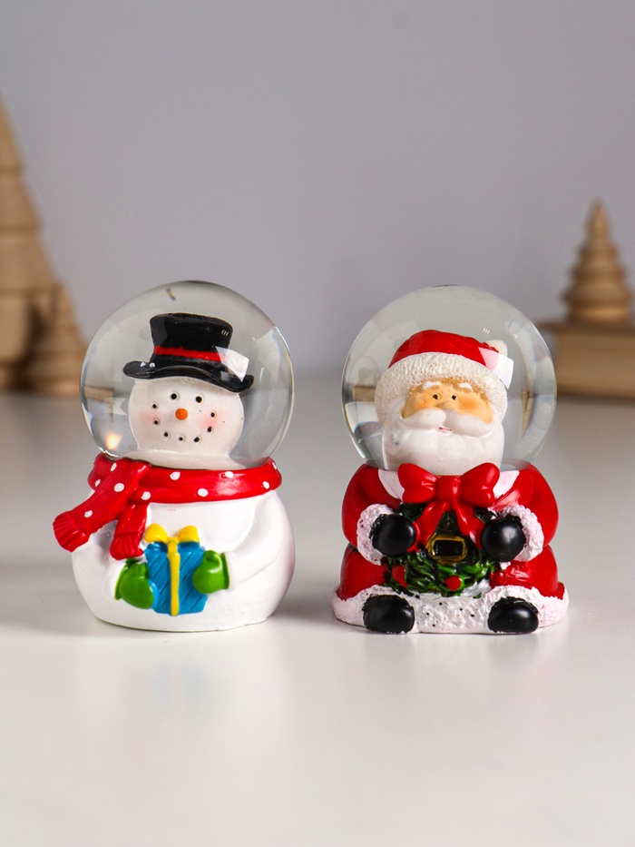 Снежный шар новогодний стеклянный «Дед Мороз или Снеговик шар на голове», 6.8×5×5 см, МИКС — Характеристики