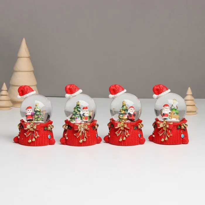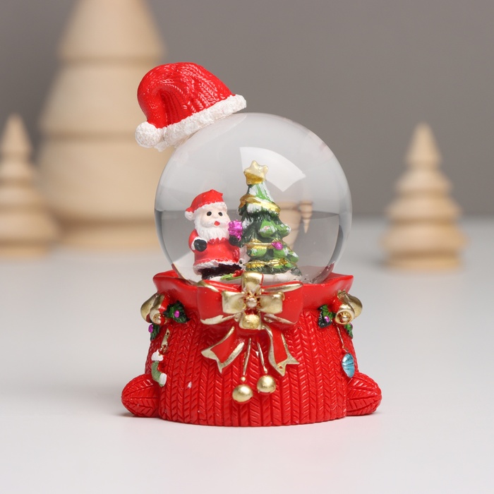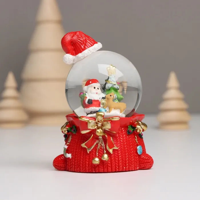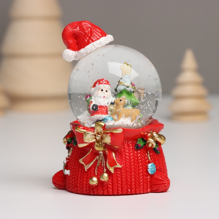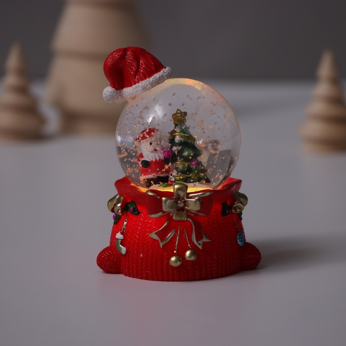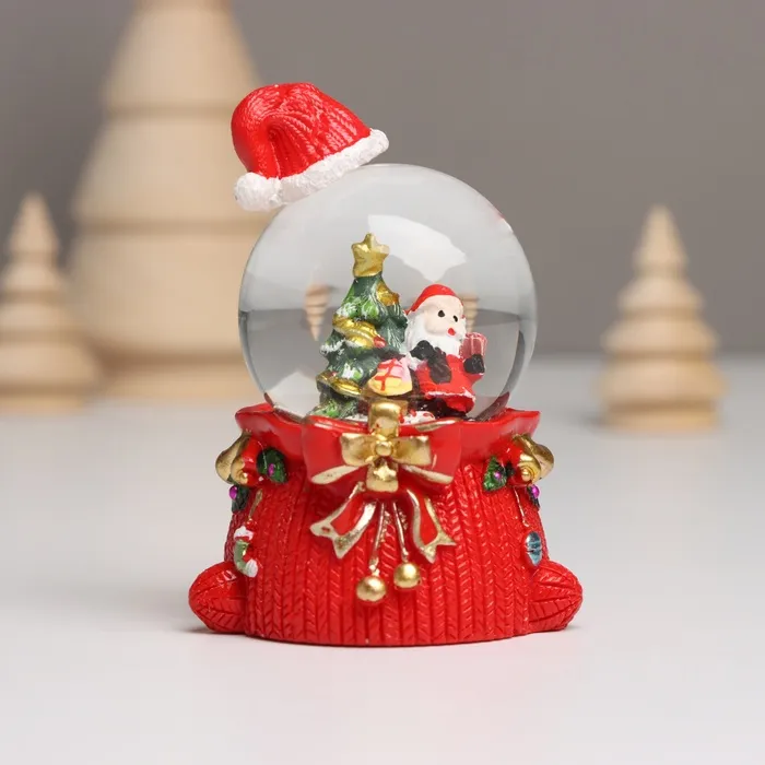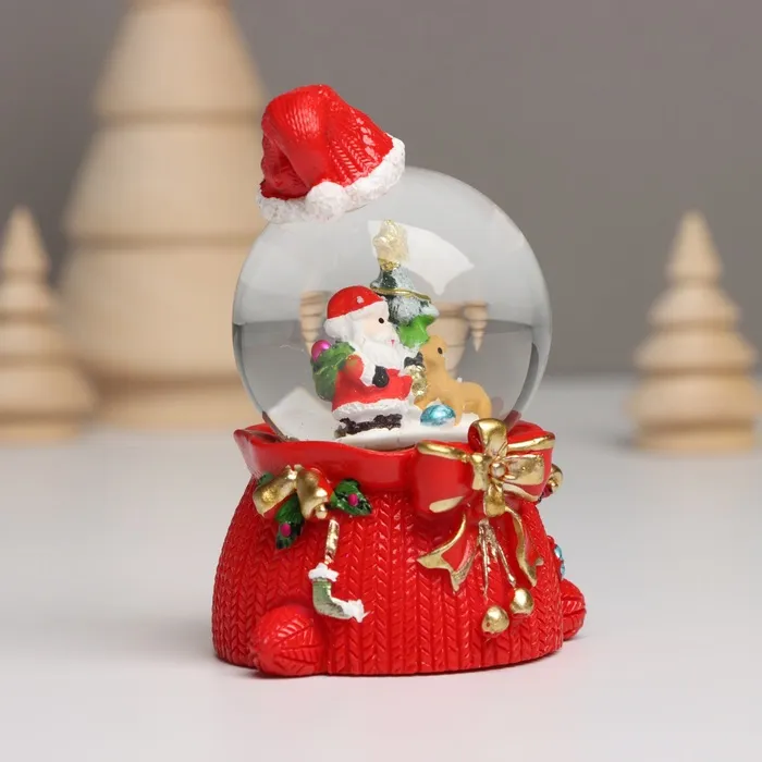 Снежный шар новогодний стеклянный «Дед Мороз. Колпак и мешок с подарками», световой, 4.5×5.5×8 см, МИКС — Характеристики