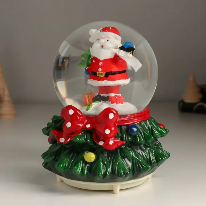 Снежный шар новогодний стеклянный «Дед Мороз», музыкальный, световой, 12×12×15.5 см — Характеристики