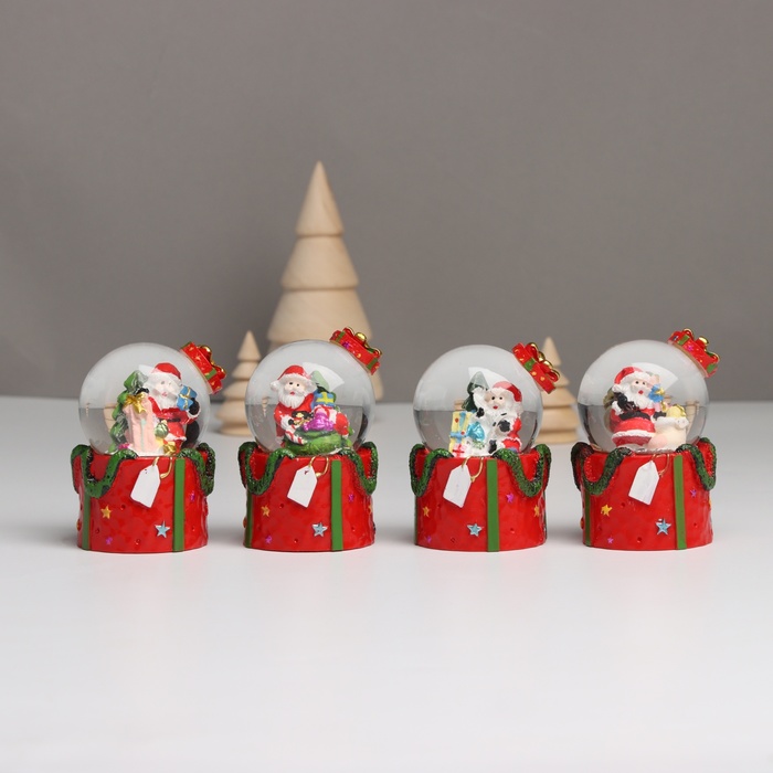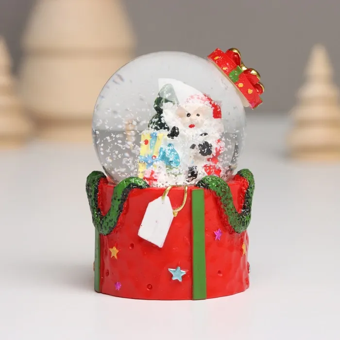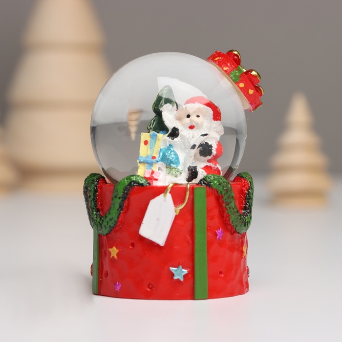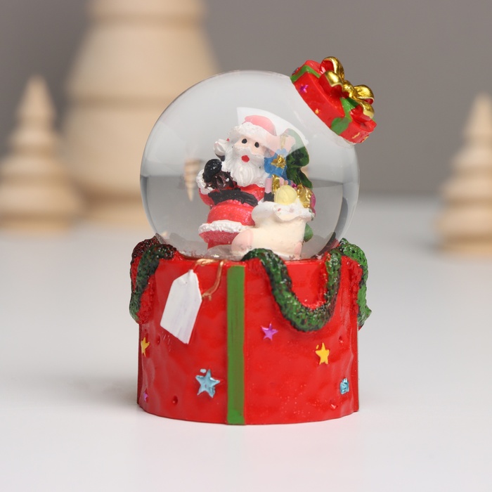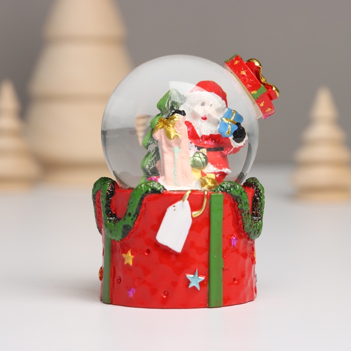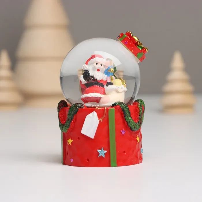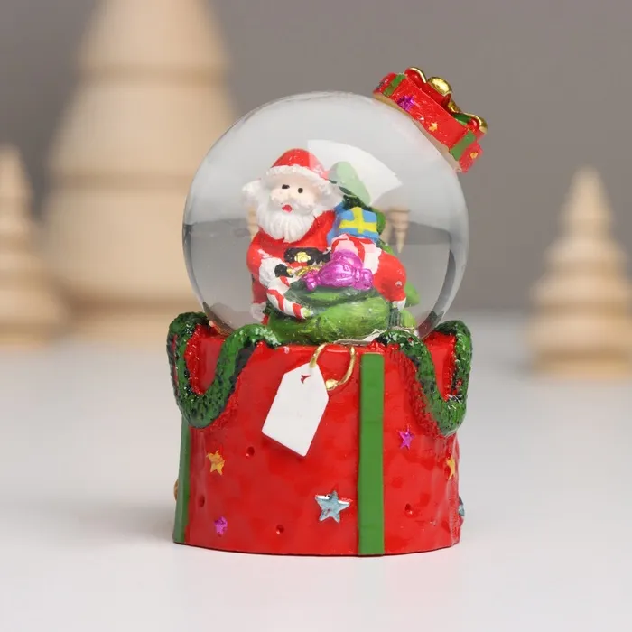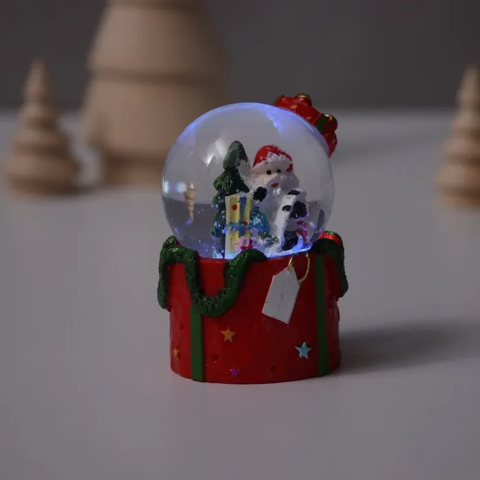 Снежный шар новогодний стеклянный «Дед Мороз. Подарок», световой, 4.5×4.5×7.5 см, МИКС — Характеристики
