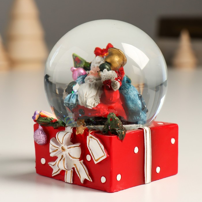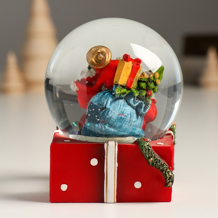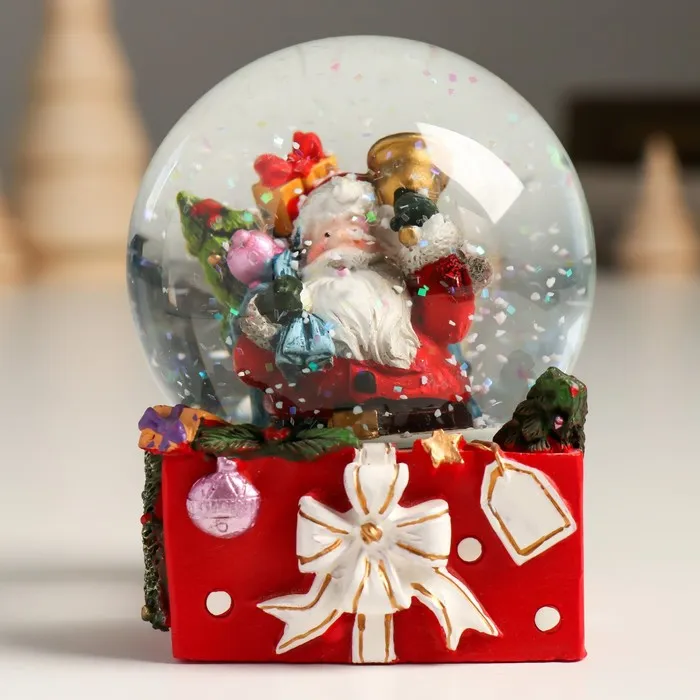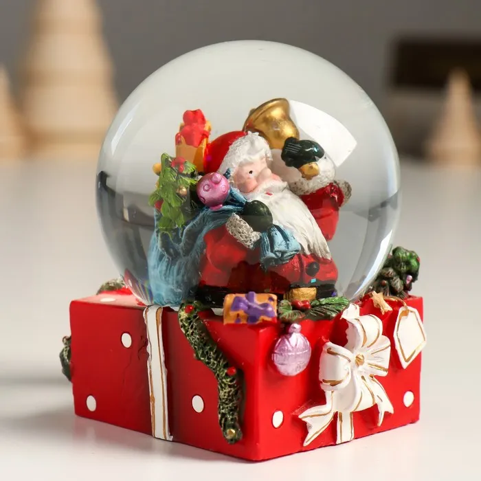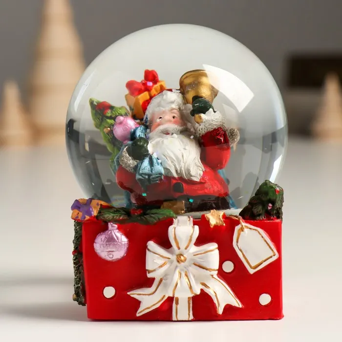Снежный шар новогодний стеклянный «Дед Мороз с мешком подарков и колокольчиком», 7×7×8 см — Характеристики