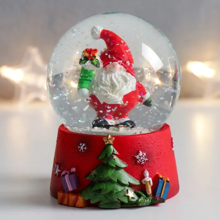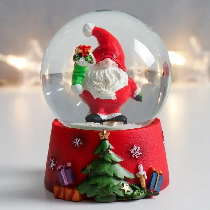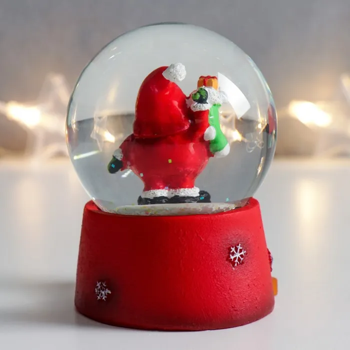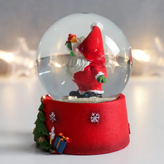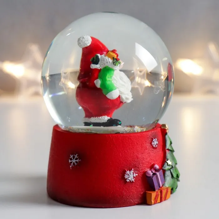 Снежный шар новогодний стеклянный «Дед Мороз с носком подарков», 7×6.7×8.8 см — Характеристики