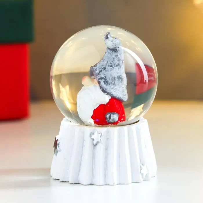 Миниатюрный шар диаметром 4,5 см представляет Деда Мороза в традиционном красно-белом ансамбле. Погрузитесь в волшебство зимней сказки: достаточно лишь слегка встряхнуть шар, и снежные хлопья закружатся вокруг нашей позитивной и любимой фигурки.