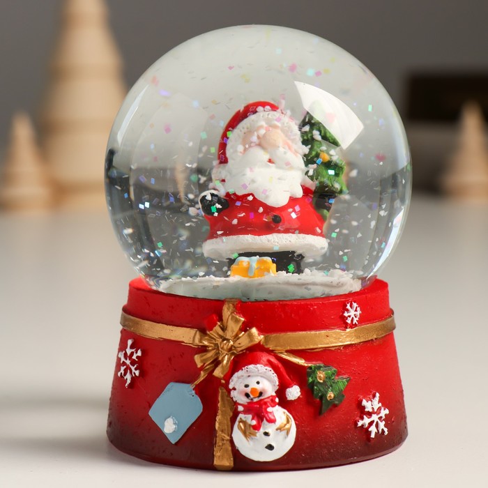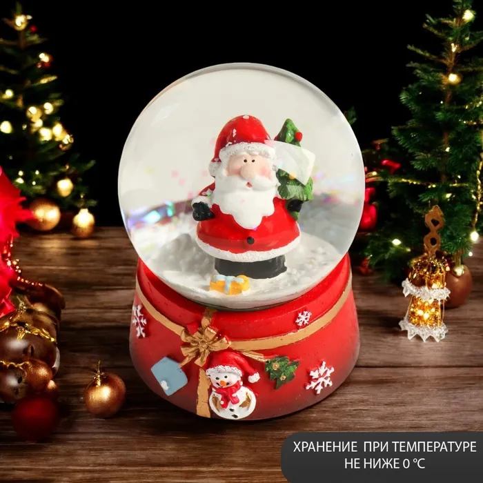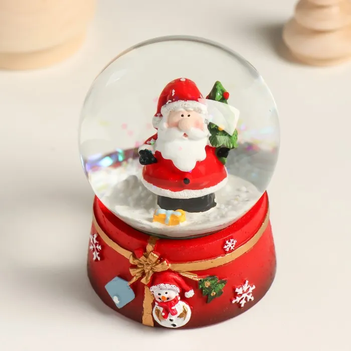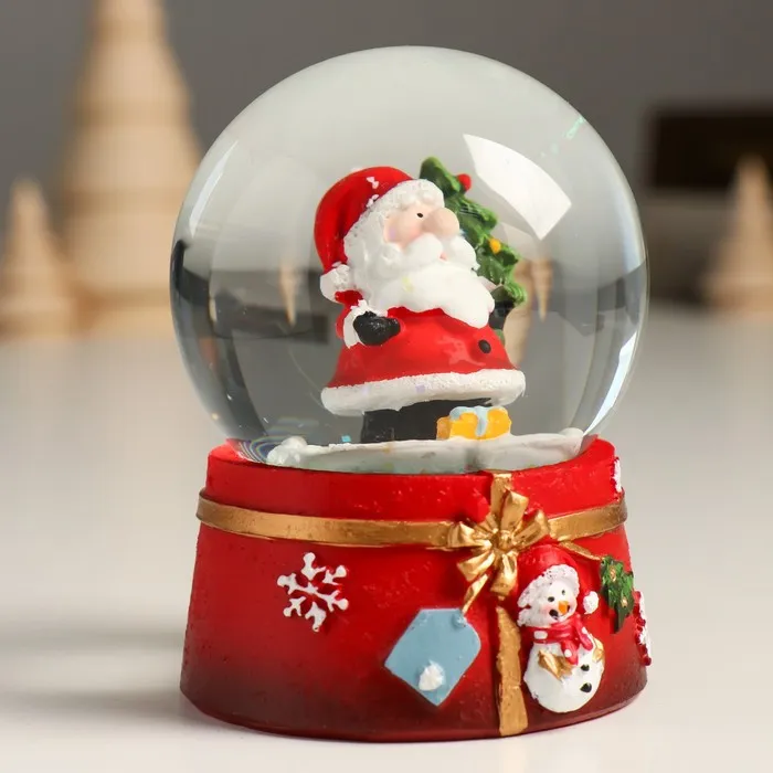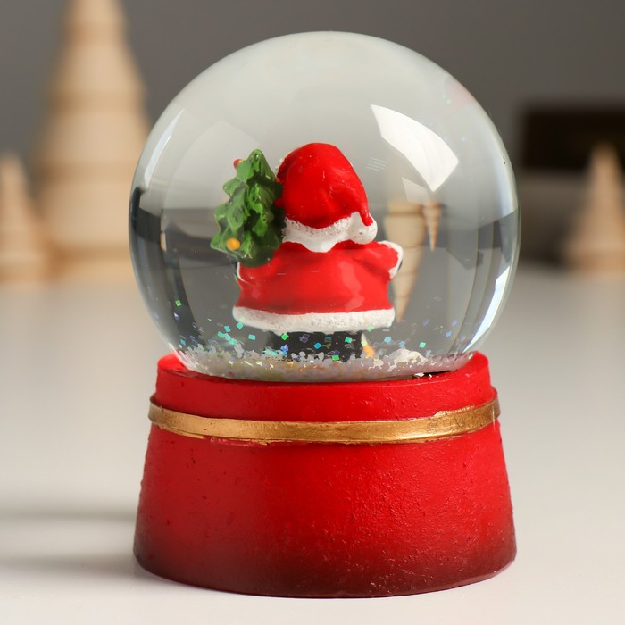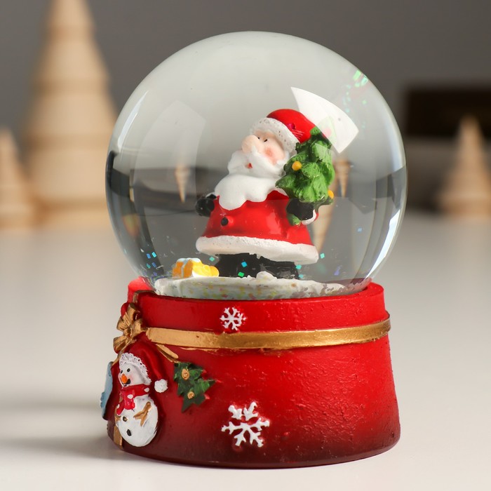 Снежный шар новогодний стеклянный «Дедушка мороз с нарядной ёлкой», 7×8×9 см — Характеристики
