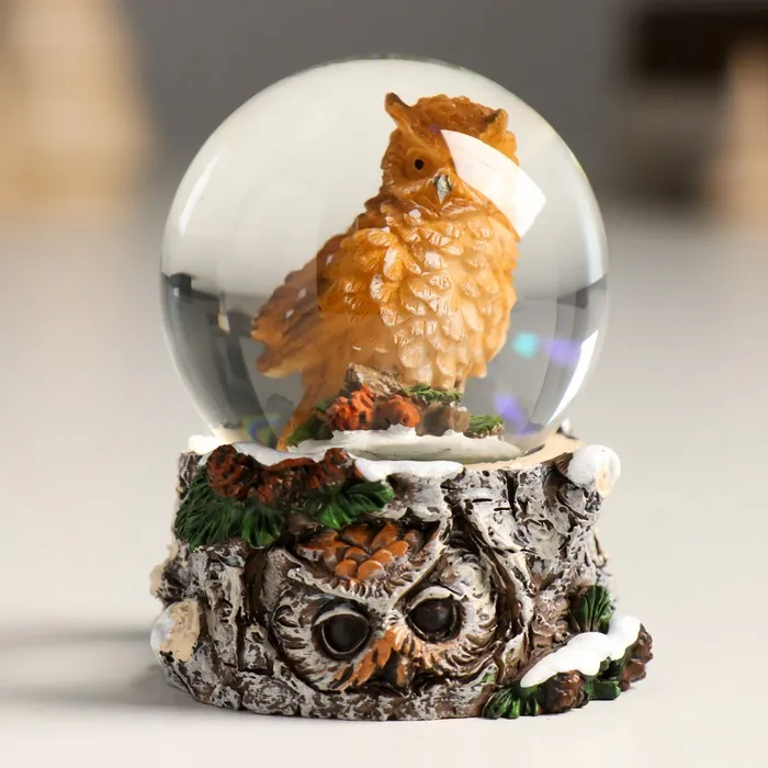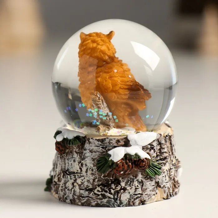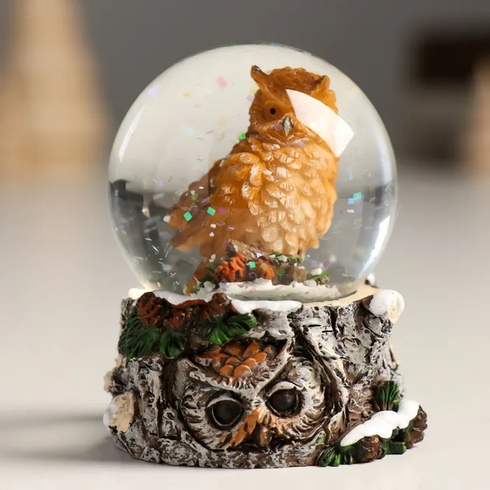 Ищете оригинальный и красивый сувенир, который подарит радость и украсит интерьер? Тогда обратите внимание на водный шар с филином. Снежный шар новогодний стеклянный «Филин», полистоун, 4,5х4,5х6,5 см — это не просто статуэтка, а настоящий декоративный элемент. Когда вы наклоните шар, начнётся волшебное зрелище. Аксессуар станет отличным подарком на Новый год, День студента или 1 Сентября.