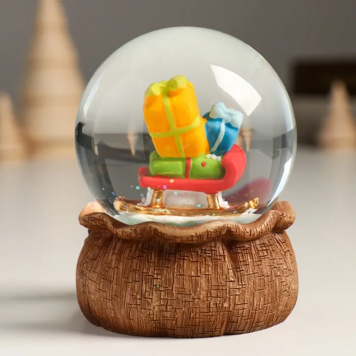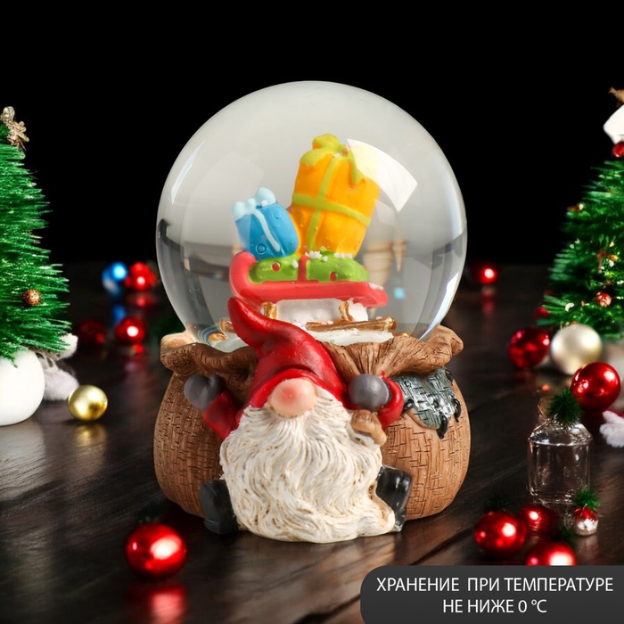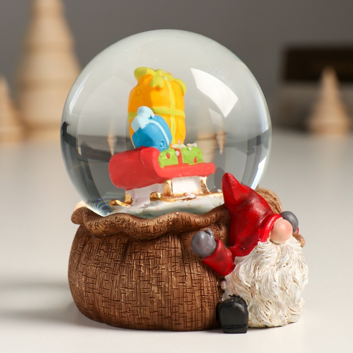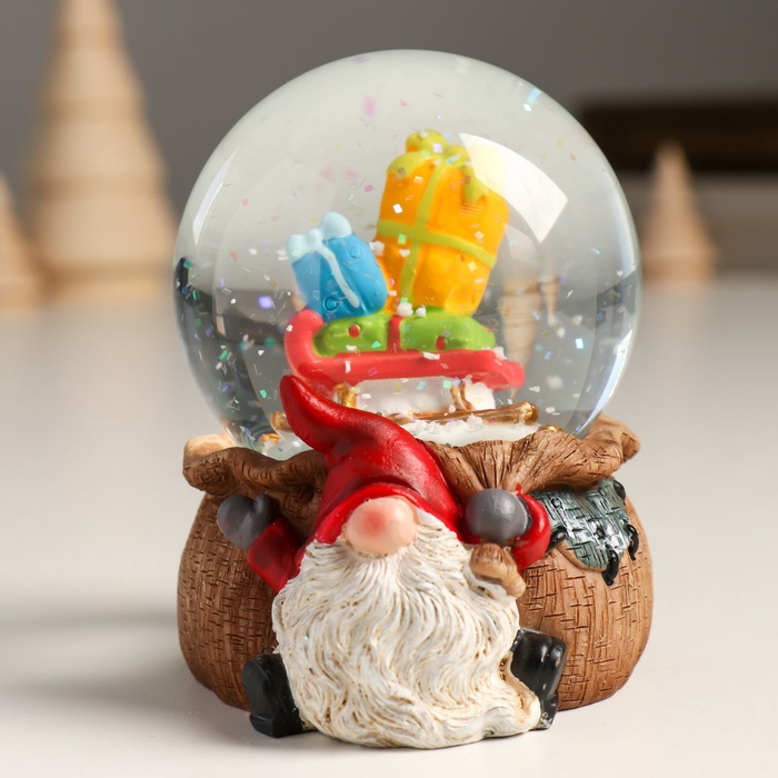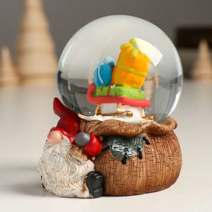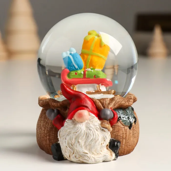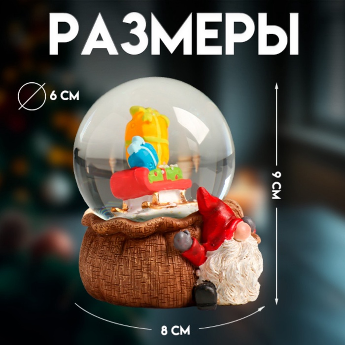 Снежный шар новогодний стеклянный «Гном с мешком», полистоун, 7х8х9 см — Характеристики
