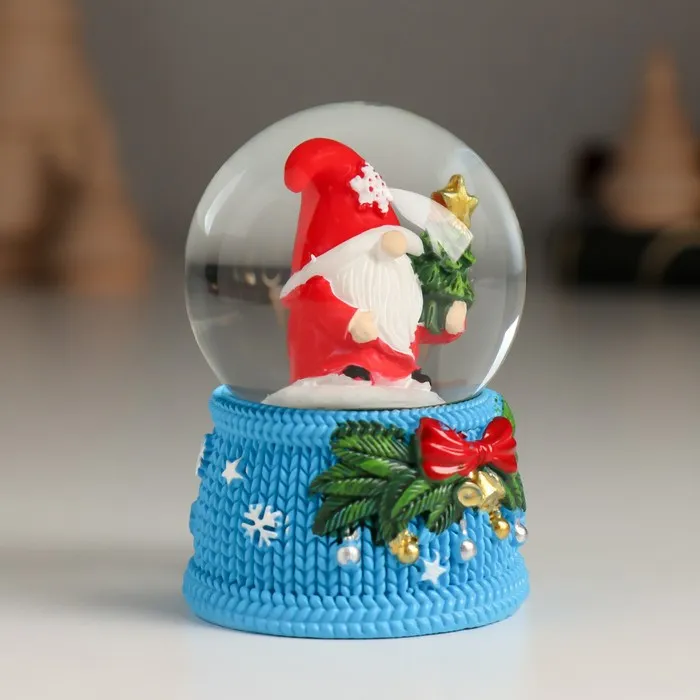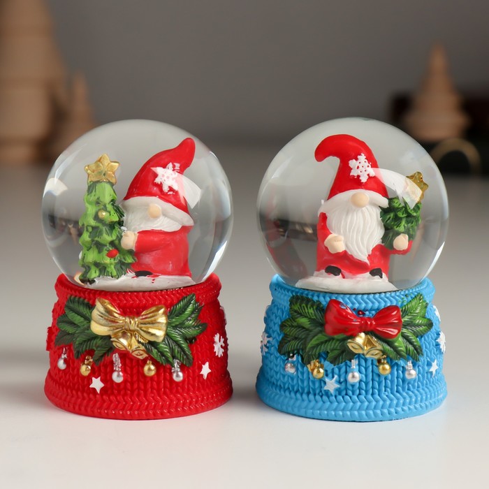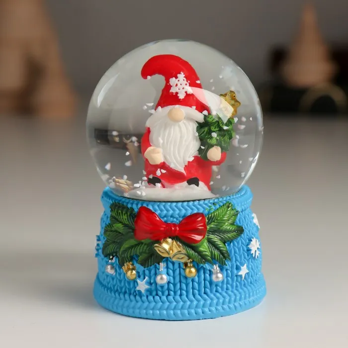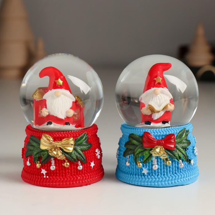 Снежный шар новогодний стеклянный «Гномик с бантом и колокольчиками», 4.6×4.6×6.7 см, МИКС — Характеристики
