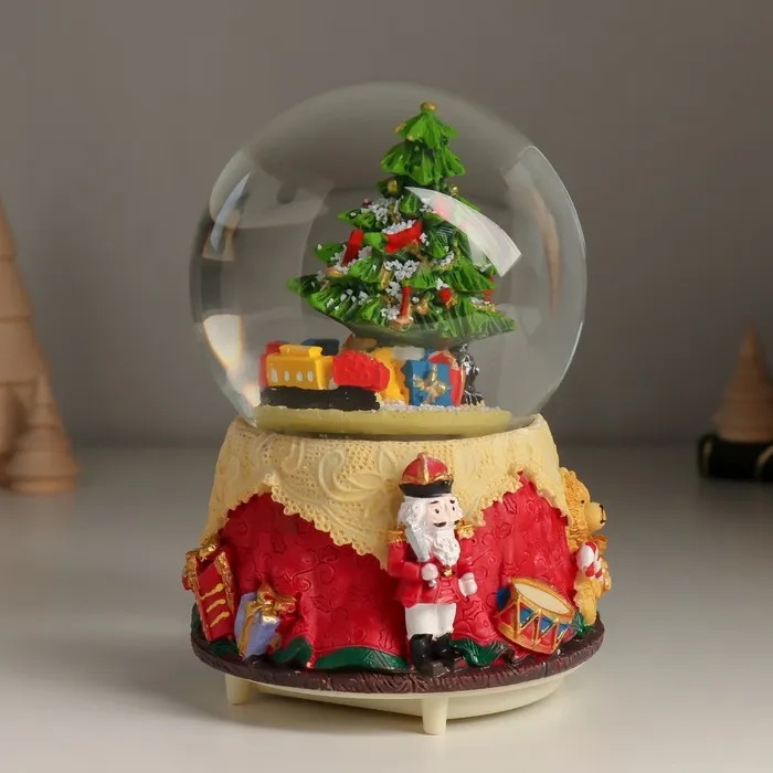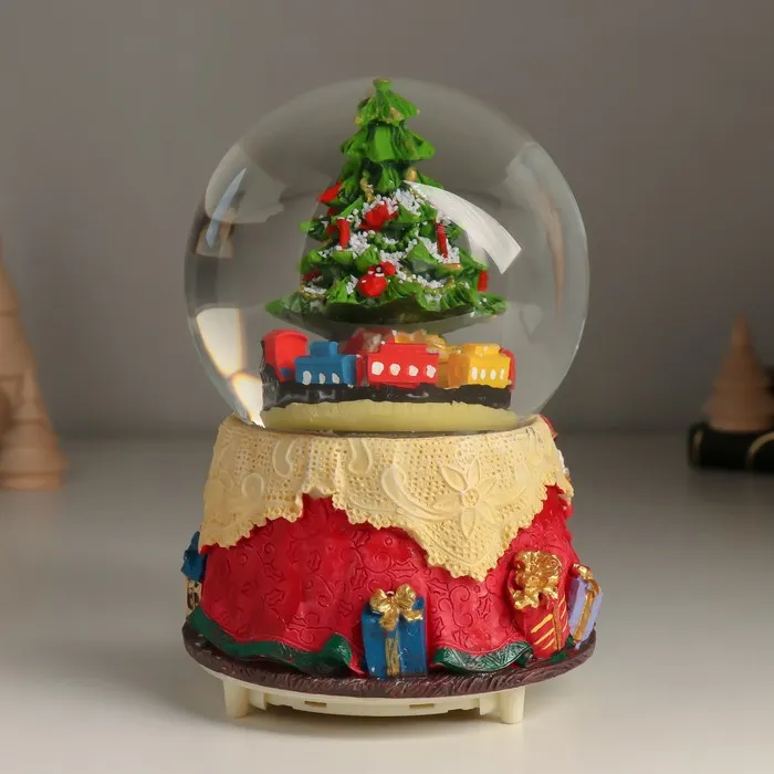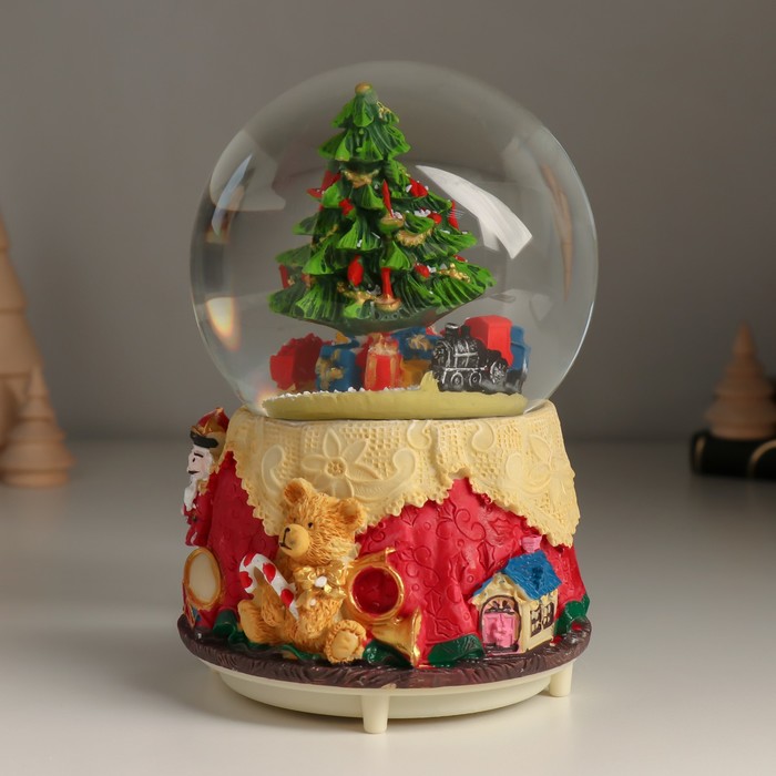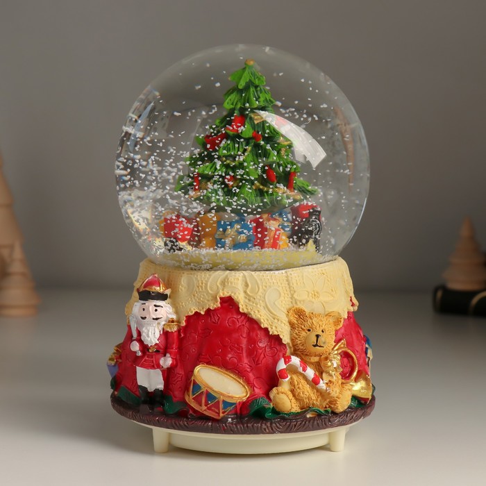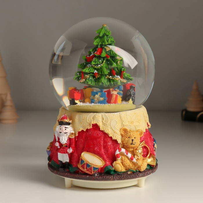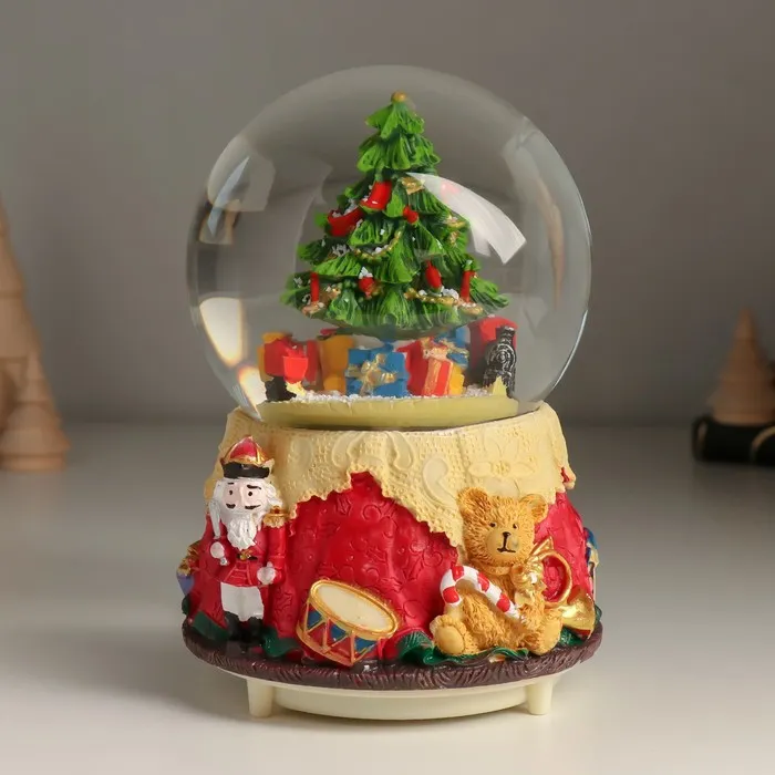 Снежный шар новогодний стеклянный «Ёлочка и мишка», музыкальный, световой, снег кружится, 10.5×10.5×14 см — Характеристики