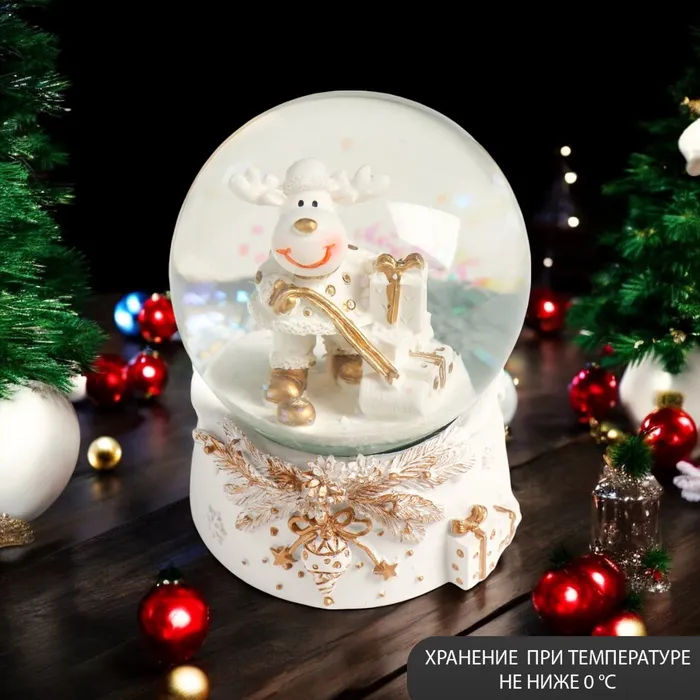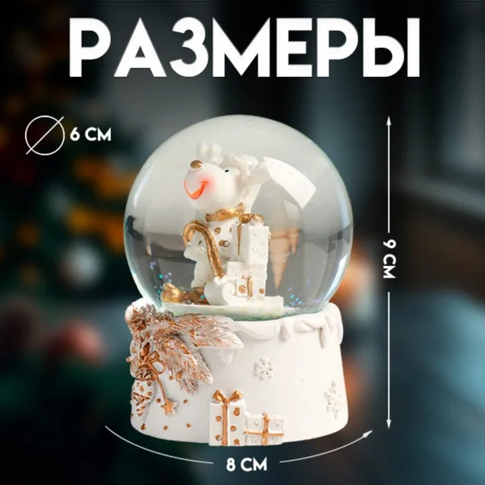 Снежный шар новогодний стеклянный «Лосик с подарком», полистоун, 7х8х9 см — Характеристики