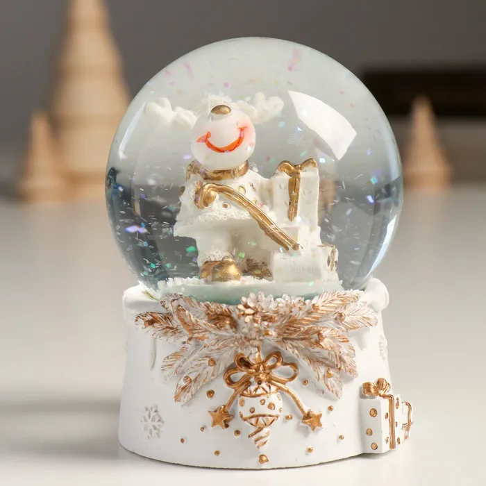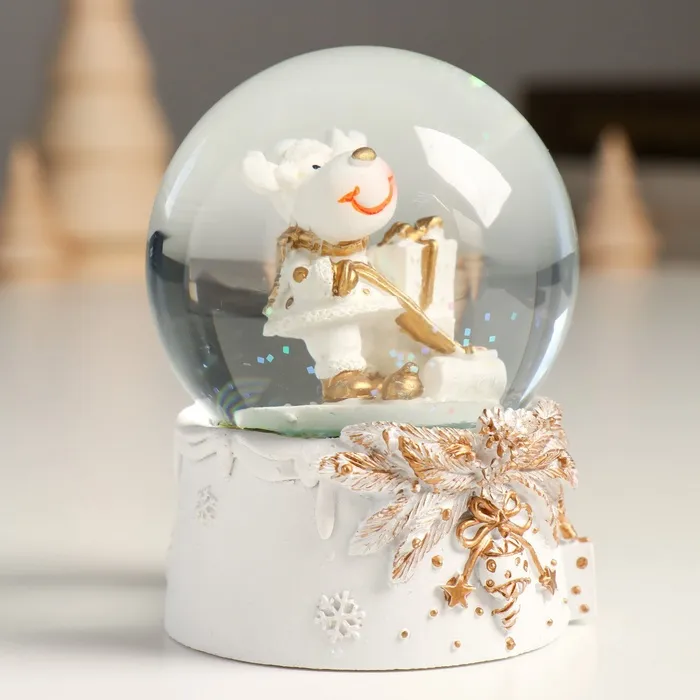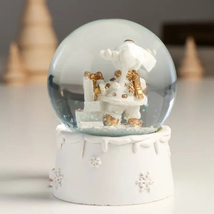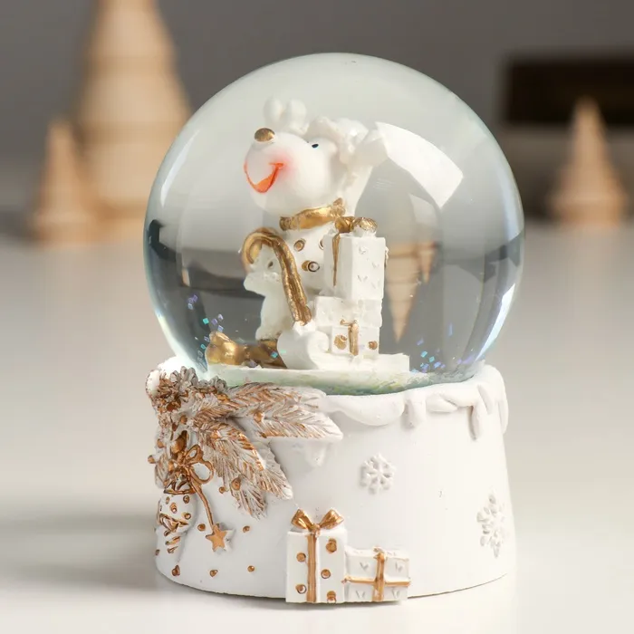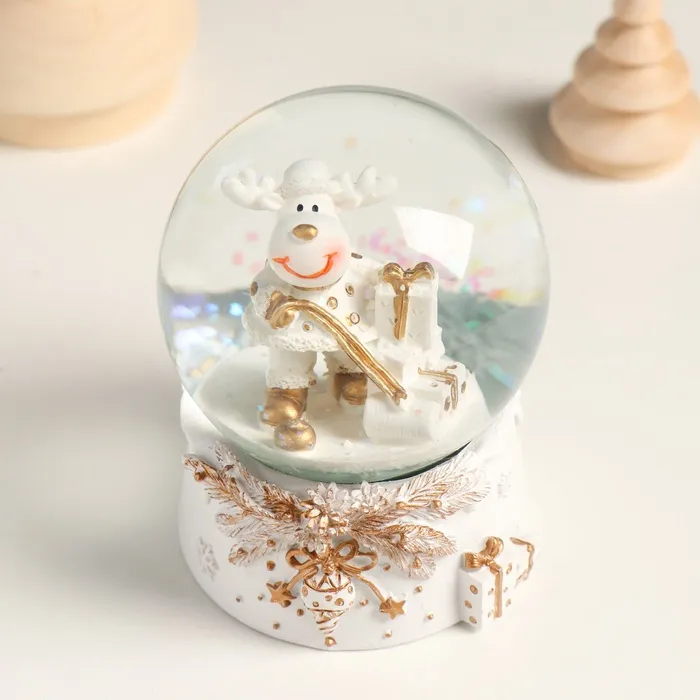 Снежный шар новогодний стеклянный «Лосик с подарком», полистоун, 7х8х9 см — оригинальный и красивый сувенир, который станет приятным напоминанием о празднике. Этот водный шар украсит интерьер и создаст неповторимую атмосферу праздника.