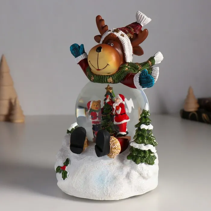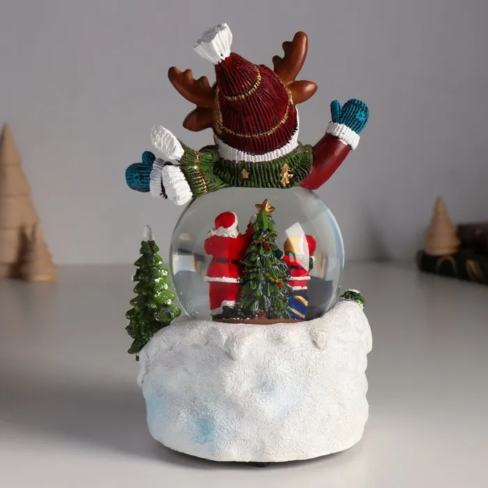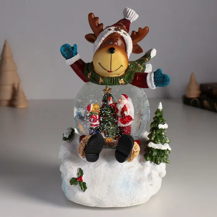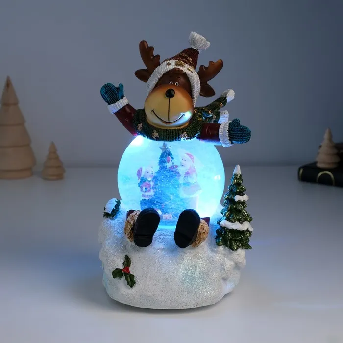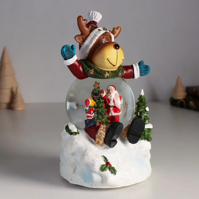 Снежный шар новогодний стеклянный «Лосик в сугробе», музыкальный, световой, d=8.5 см, 13×12×18.5 см — Характеристики