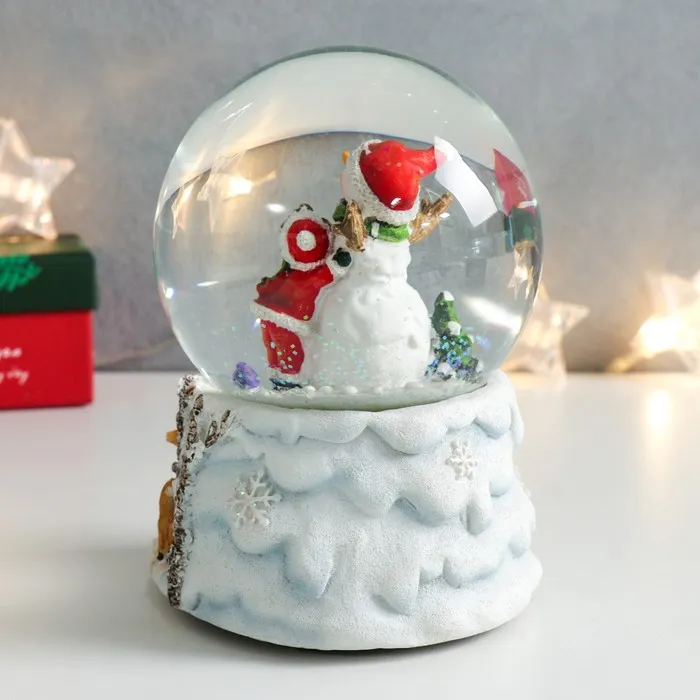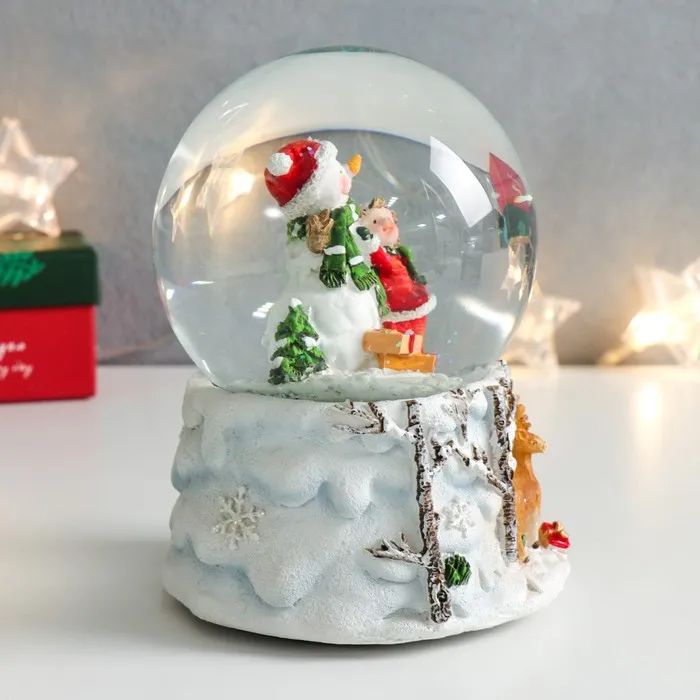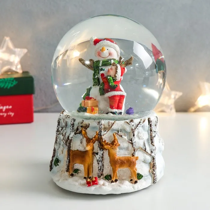 Снежный шар новогодний стеклянный «Обнимашки со снеговиком», музыкальный, 11.5×11.5×14 см — Характеристики