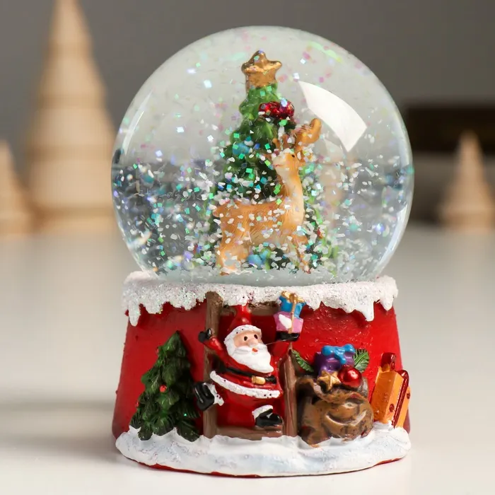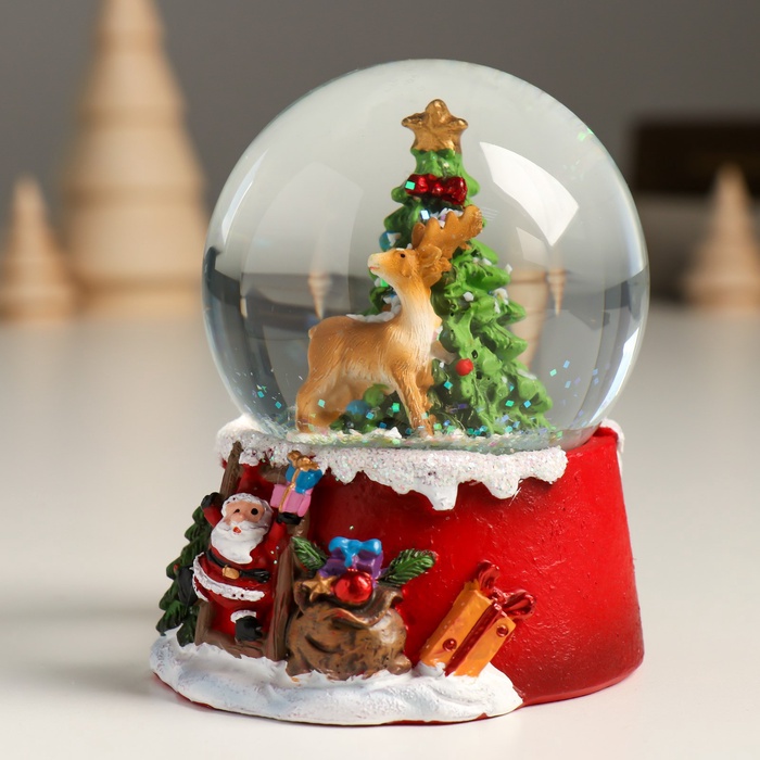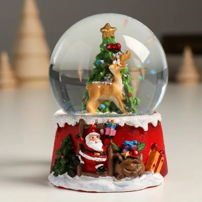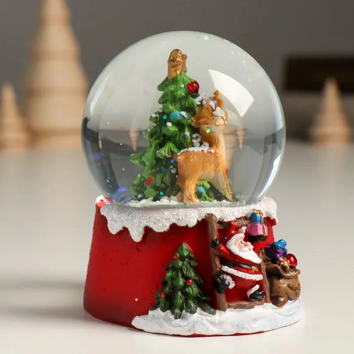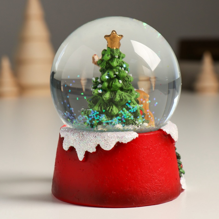 Снежный шар новогодний стеклянный «Олень у нарядной ёлочки», полистоун, 7х8х9 см — Характеристики