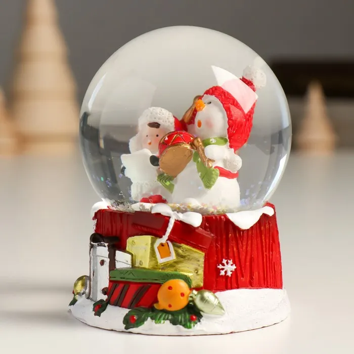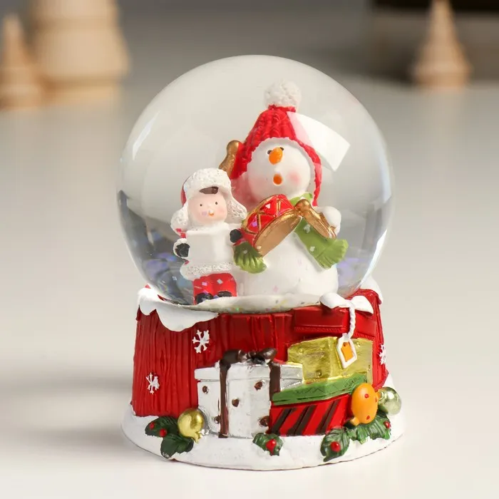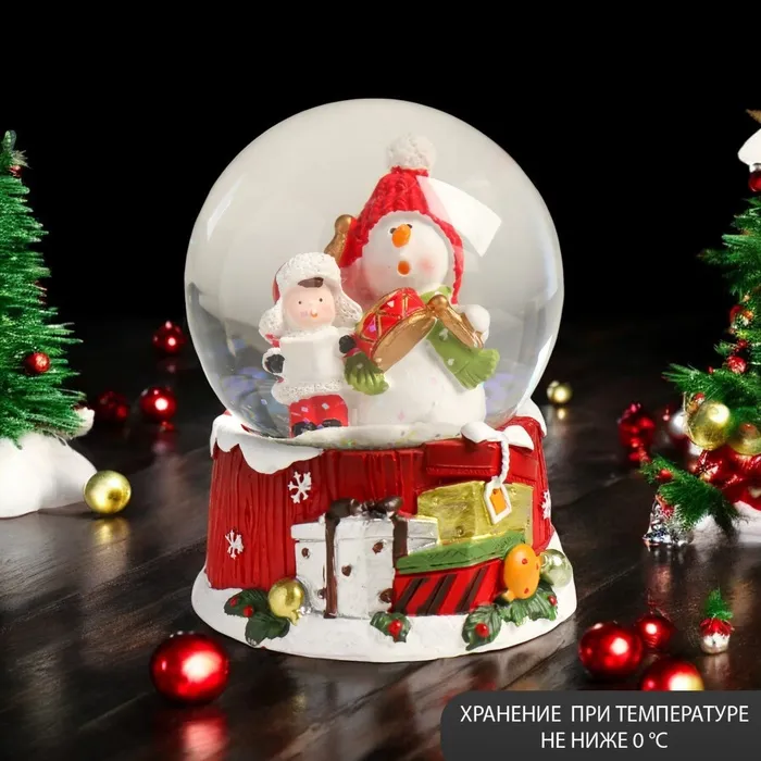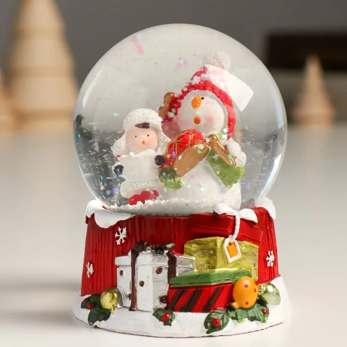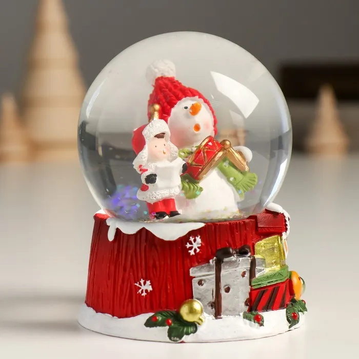 Снежный шар новогодний стеклянный «Снеговик с мальчишкой», 7×8×9 см — Характеристики