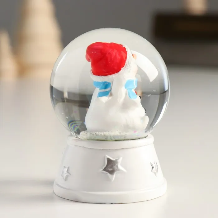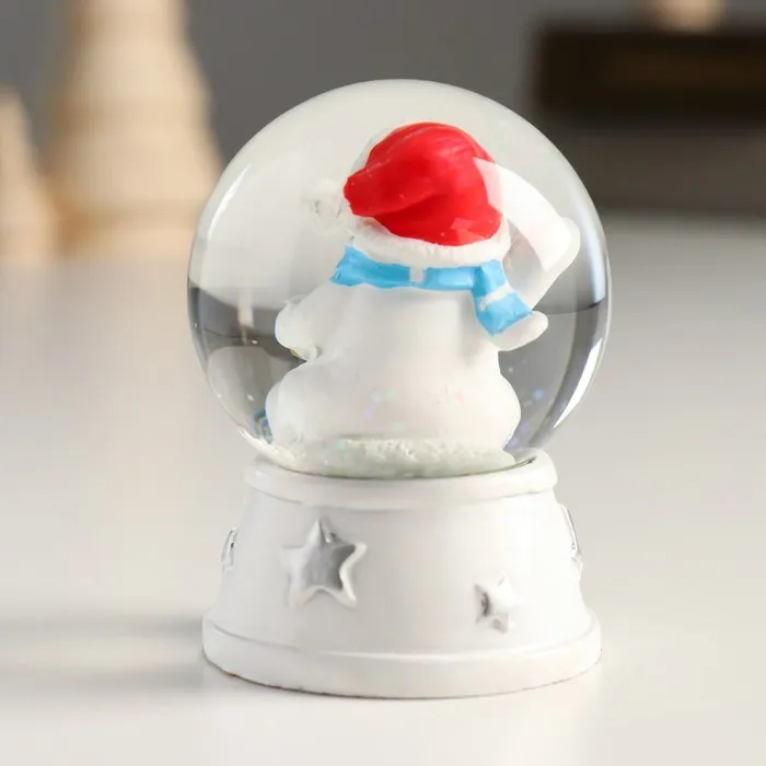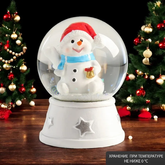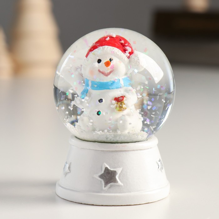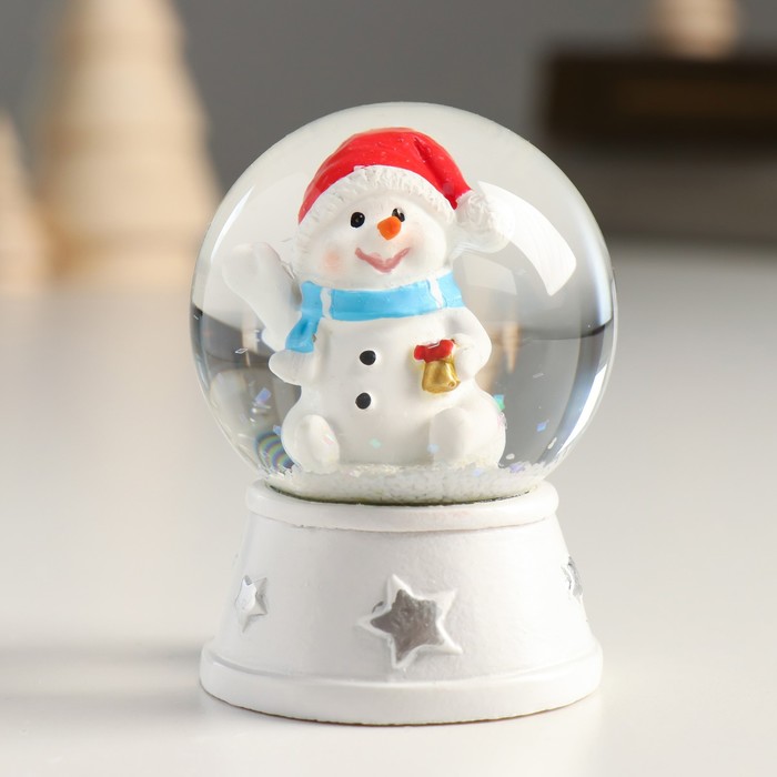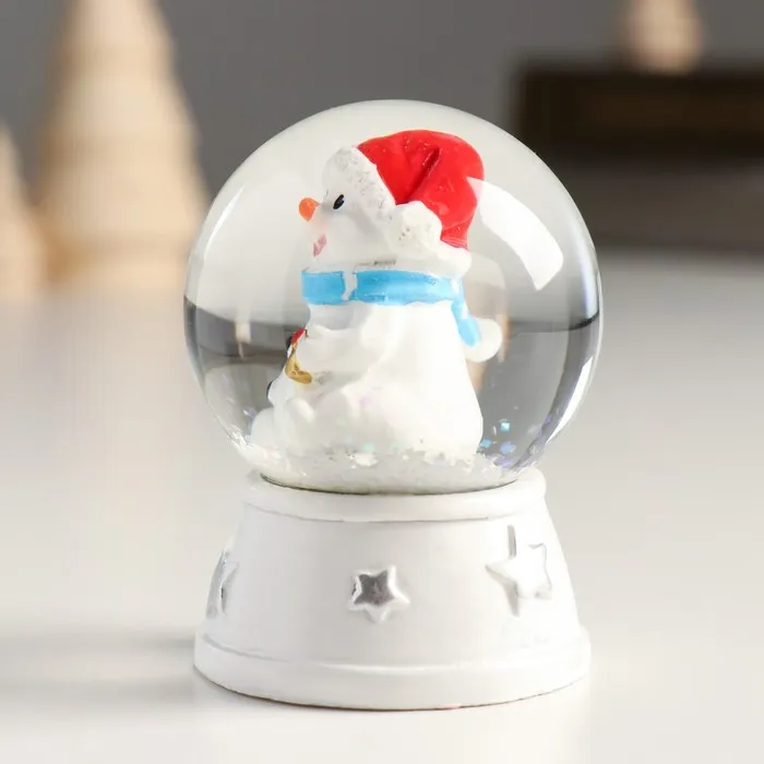 Снежный шар новогодний стеклянный «Снеговик в красном колпаке, с подарком», d=4.5 см, 6×4.5×4.5 см — Характеристики