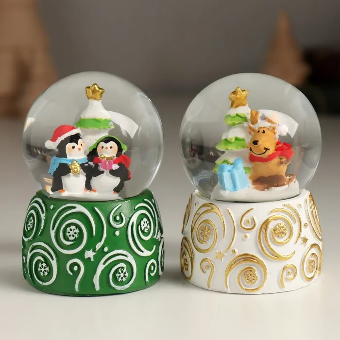 Снежный шар новогодний стеклянный «Снежные узоры с персонажем», 4.5×4.5×6.8 см, МИКС — Характеристики