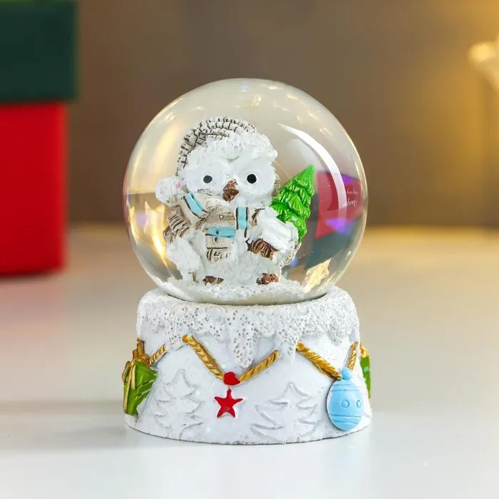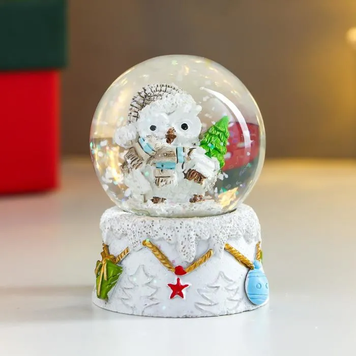 Снежный шар новогодний стеклянный «Совушка в колпаке, с ёлочкой», d=4.5 см, 6×4.5×4.5 см — Характеристики