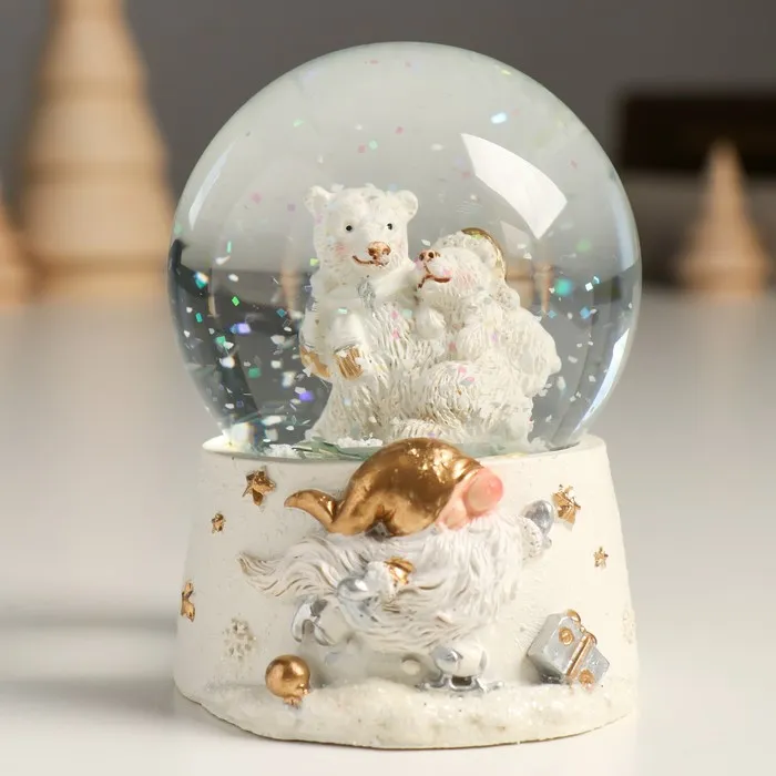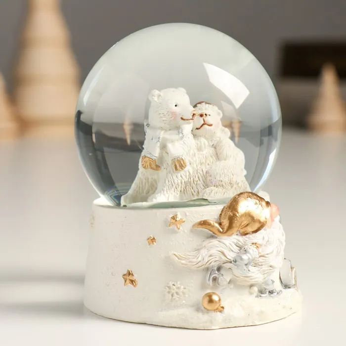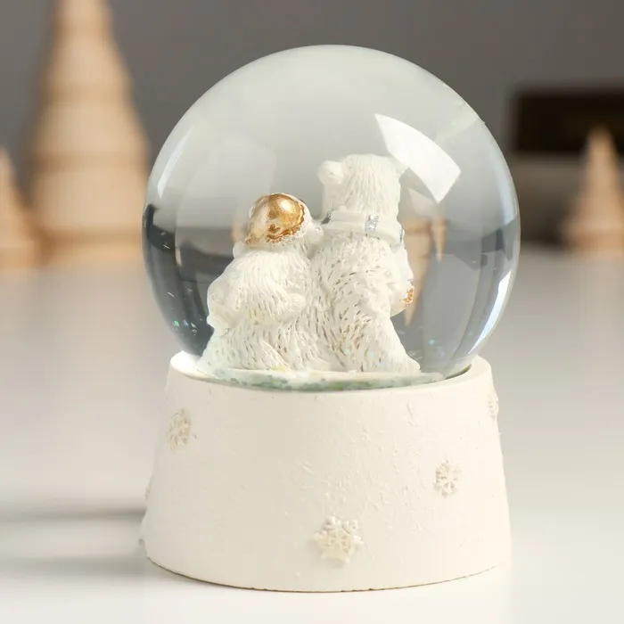 Снежный шар стеклянный «Белые медведи», белый с золотом, 7×8×9 см — Характеристики